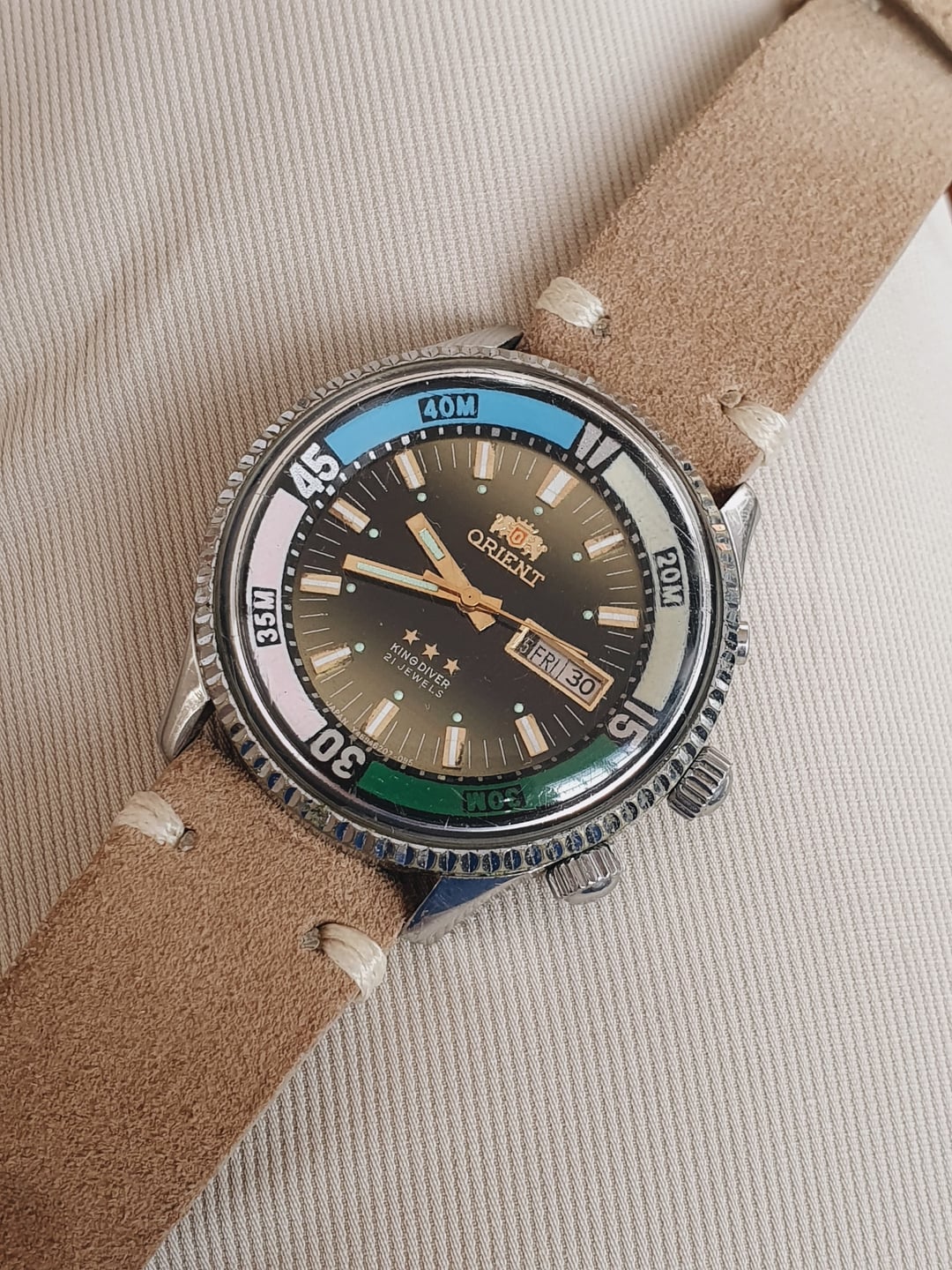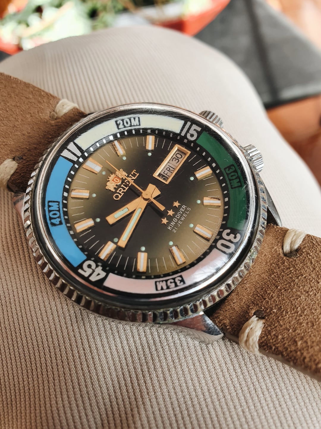 The King Diver is one of Orient’s most sought-after watches – not to be confused with the more common SK. It features a large 42mm case with a colourful inner bezel and a reliable in-house 21-jewel automatic movement. This particular example was serviced in 2022. **Condition:** Very good. The case has minor usage marks for its age. The crystal has a few hairline scratches but I’ll polish them before shipping. See detailed photos for full condition and clarity. **Case Size:** 42mm **Crystal:** Acrylic **Movement:** These had an Orient 46943 movement with automatic winding, 21 jewels, 21,600 bph, and a power reserve of 40 hours. Serviced in 2022 by my watchmaker. **Price:** Asking $270. Please add $20 for worldwide shipping. Payment methods include Wise, ACH transfer, Revolut, Bitcoin (On-Chain or Lightning), or PayPal G&S for buyers with solid references. Add +6% for currency conversion fees on the latter. I’m located in Portugal, but worldwide shipping isn’t an issue. Established seller with over 220 transactions – buy with confidence! Make sure to follow me on Instagram (@daily.worn) to check out the newest additions. Happy to answer serious inquiries. No trades, no lowballs. [Pictures](https://imgur.com/a/9wGxY8l) [Timestamp](https://imgur.com/a/7w1aQNY)