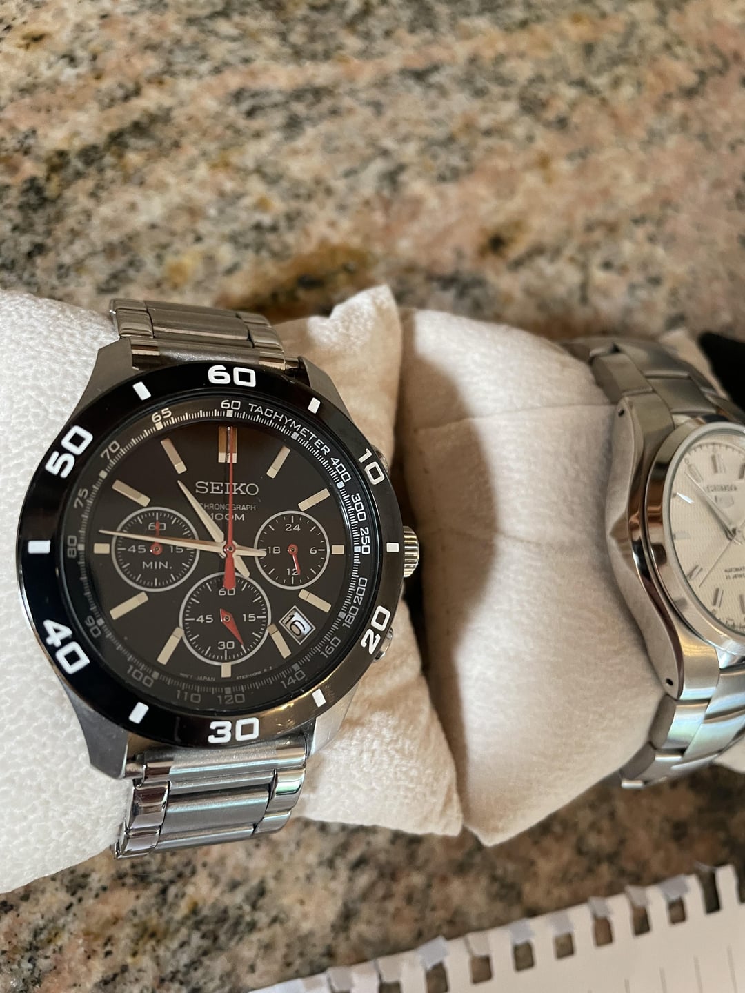 Selling 3 custom seikos: MOP 115+shipping AP Mod 115+shipping UAE mod: 200+shipping 2 regular seikos: 5 series automatic SOLD Seiko chronograph SOLD *needs new battery I am open to offers on all watches. Please let me know if you’d like additional pictures on any.