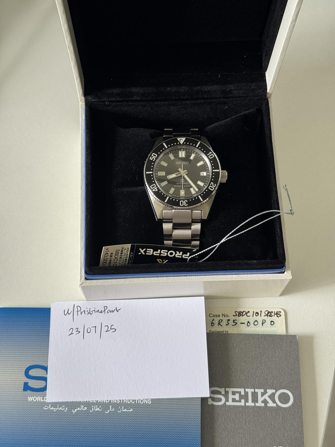 Selling my SPB143 in great condition - first gen without the lume pip at 3 o’clock. Comes with box and papers, as well as full links. Warranty expired. Light signs of wear on watch, please refer to the photos. Let me know if you need more angles. Price: $699 shipped from Singapore to US / UK / EU / Australia / Asia. Takes 2 weeks or so. *US only: top up another $20 for express shipping (Fedex). Payment methods: Wise / Revolut (no fees), Crypto, PayPal G&S (+4.5%) or PayPal F&F Do comment before starting a chat or sending a PM, cheers!