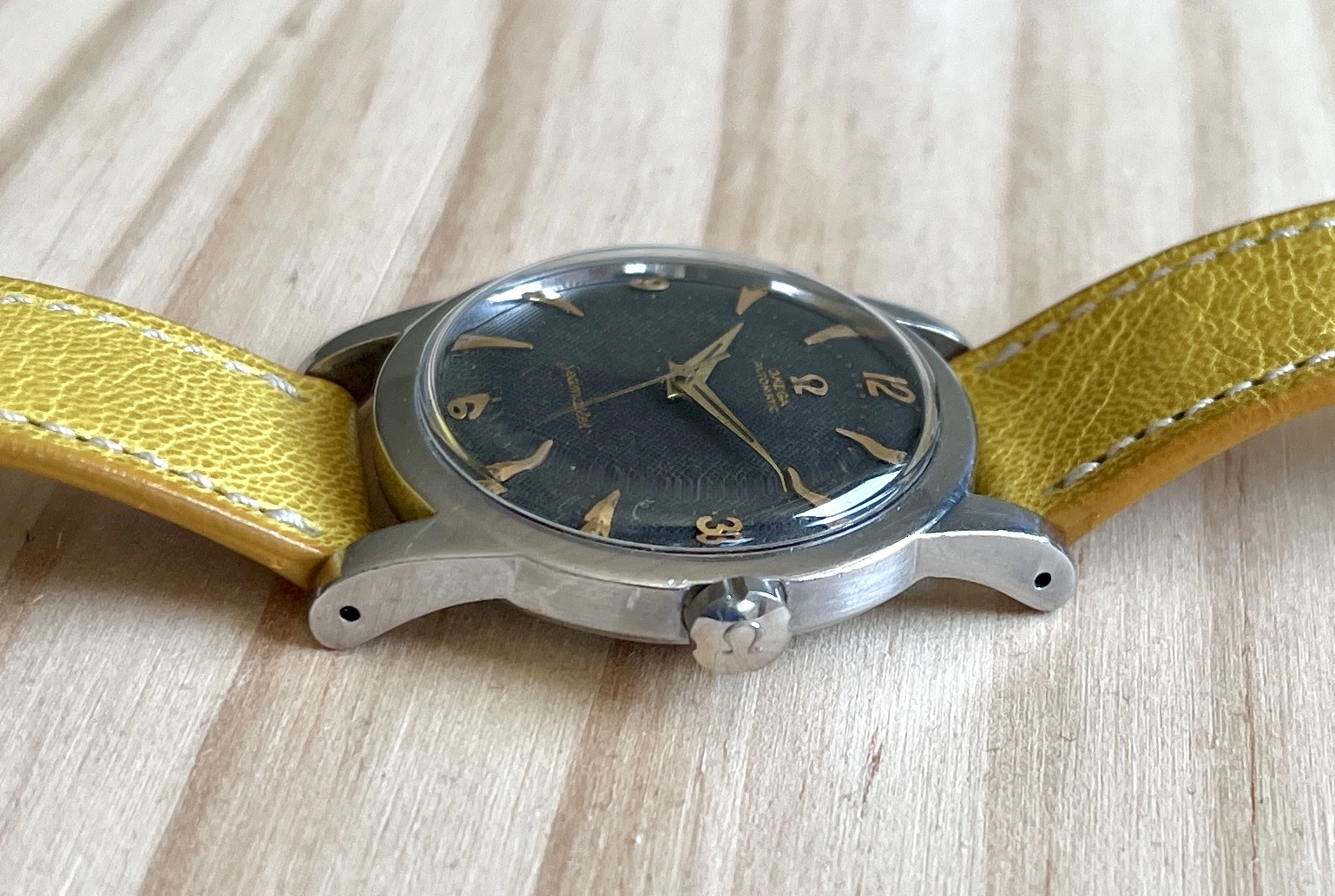Hands: The watch came with a minute hand that was too long. I invested in a donor 2577 to have the correct hands. I had both the hour and the minute hands swapped during the service so they match in color, but they have a slightly different hue compared to the hour indices.