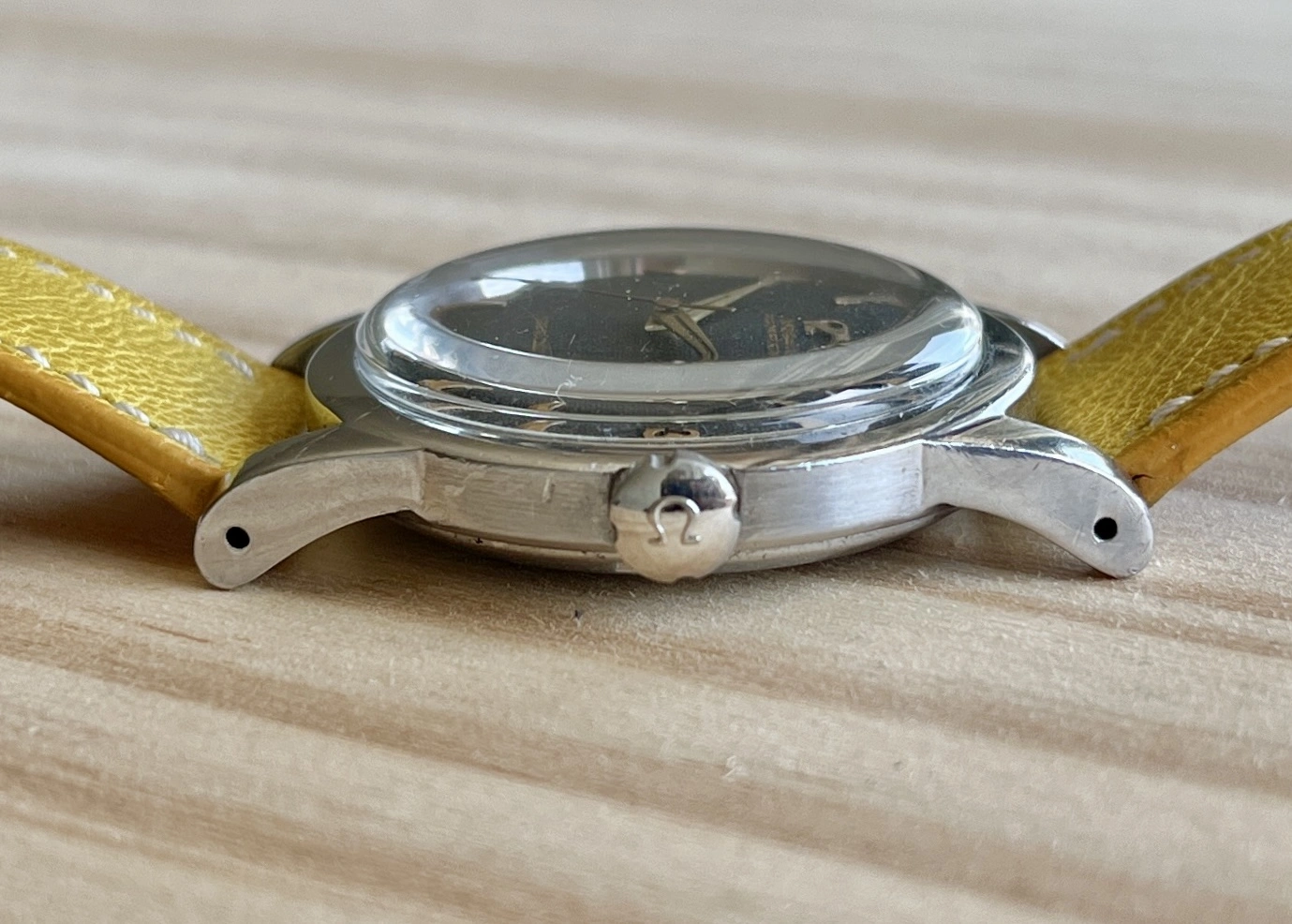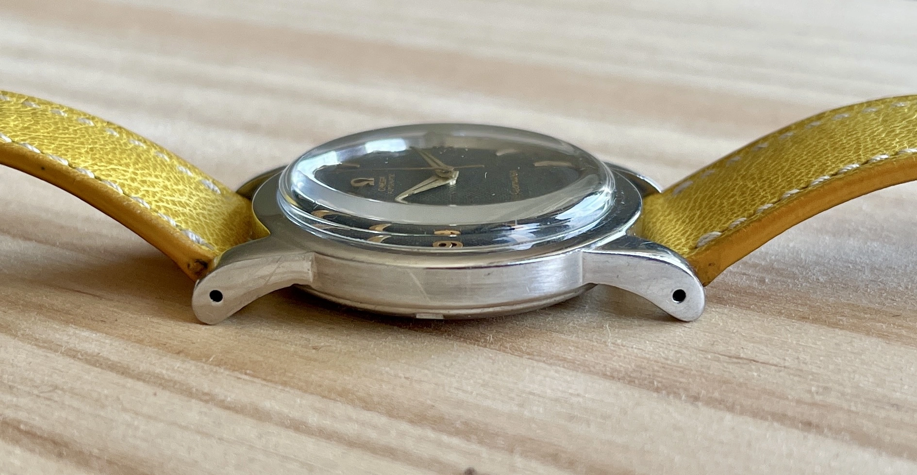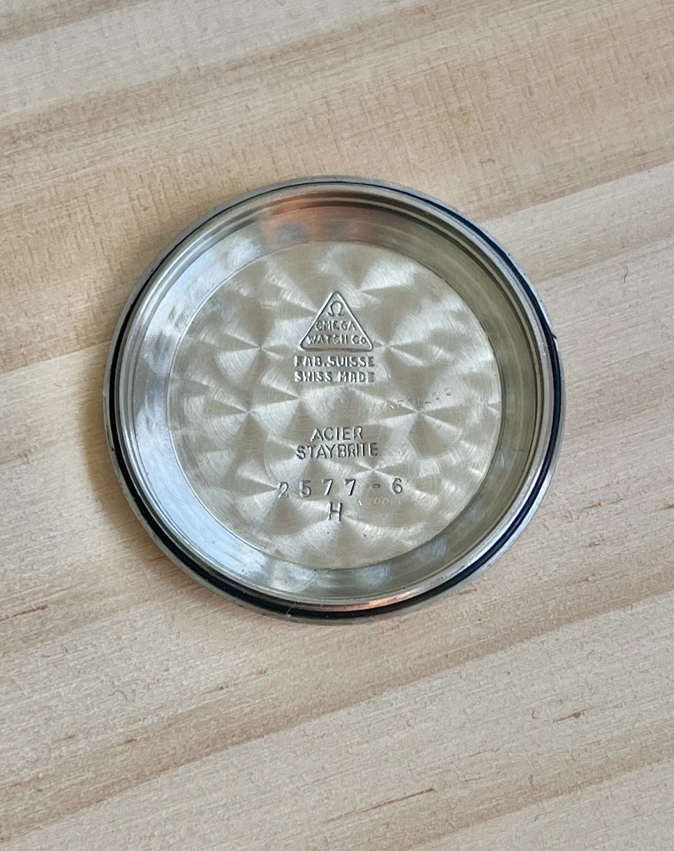 Case: Stainless steel case with a screw back in good vintage shape. Probably some polishing in the past. As you may know the reference 2577 came with different case styles. Check the different case styles in this great thread about the 2577. This example is an earlier case with thin lugs without bevels (so it's not overpolished).