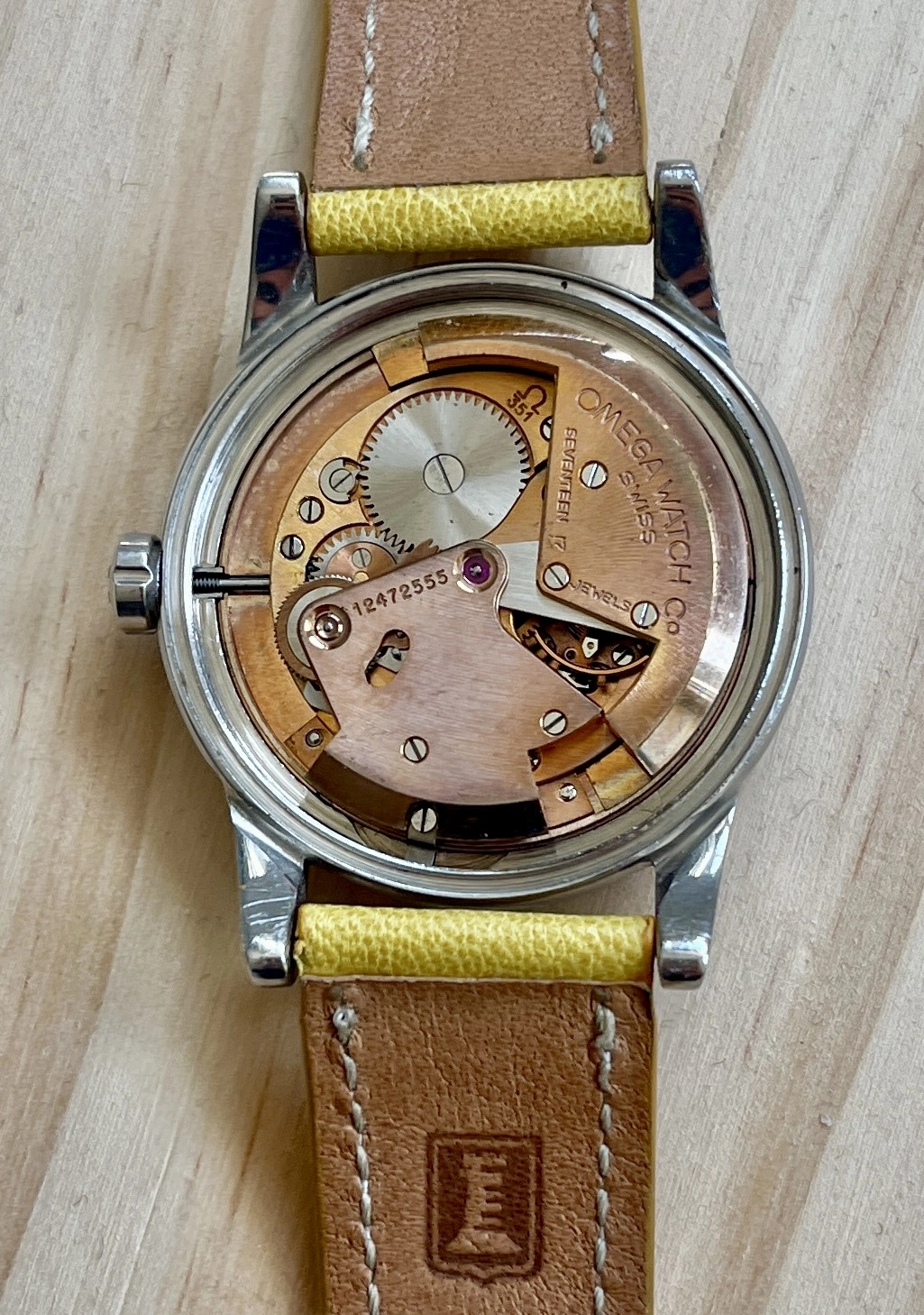 Movement: Caliber 351, a bumper movement. The serial number dates it to approximately 1950. The movement was serviced by my watchmaker in October 2023. A copy of the service receipt will be provided.