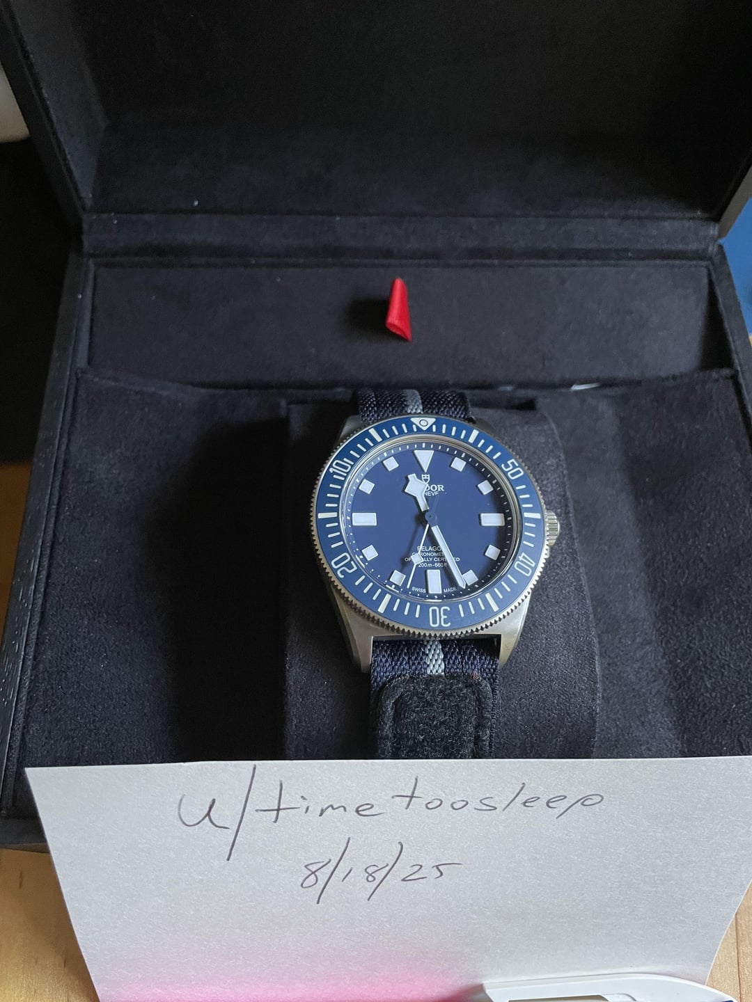 Tudor Pelagos FXD MN22 (Blue) I never thought I would sell this awesome watch and will probably regret it, but so it goes. I’ve worn this watch pretty consistently since I got it back in 2022 as a weekend/summer watch. It works flawlessly and keeps great time. Strap changes are obviously a breeze and the titanium makes it super light. Despite the use, the watch is in great condition. There are some marks on the case that is typical for grade 2 titanium, but no deep scratches or dings that I can see. The Tudor straps are unworn as I’ve worn it mostly on non-OEM straps. I will include a few unworn nato straps as pictured. I also have some straps from Nick Mankey and Haveston if you are interested. The watch is full set…box/papers/receipt Price: $2500 all in includes shipping. Zelle or wire only. No PayPal. Message me with questions.
