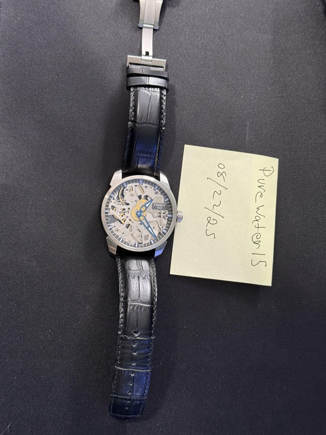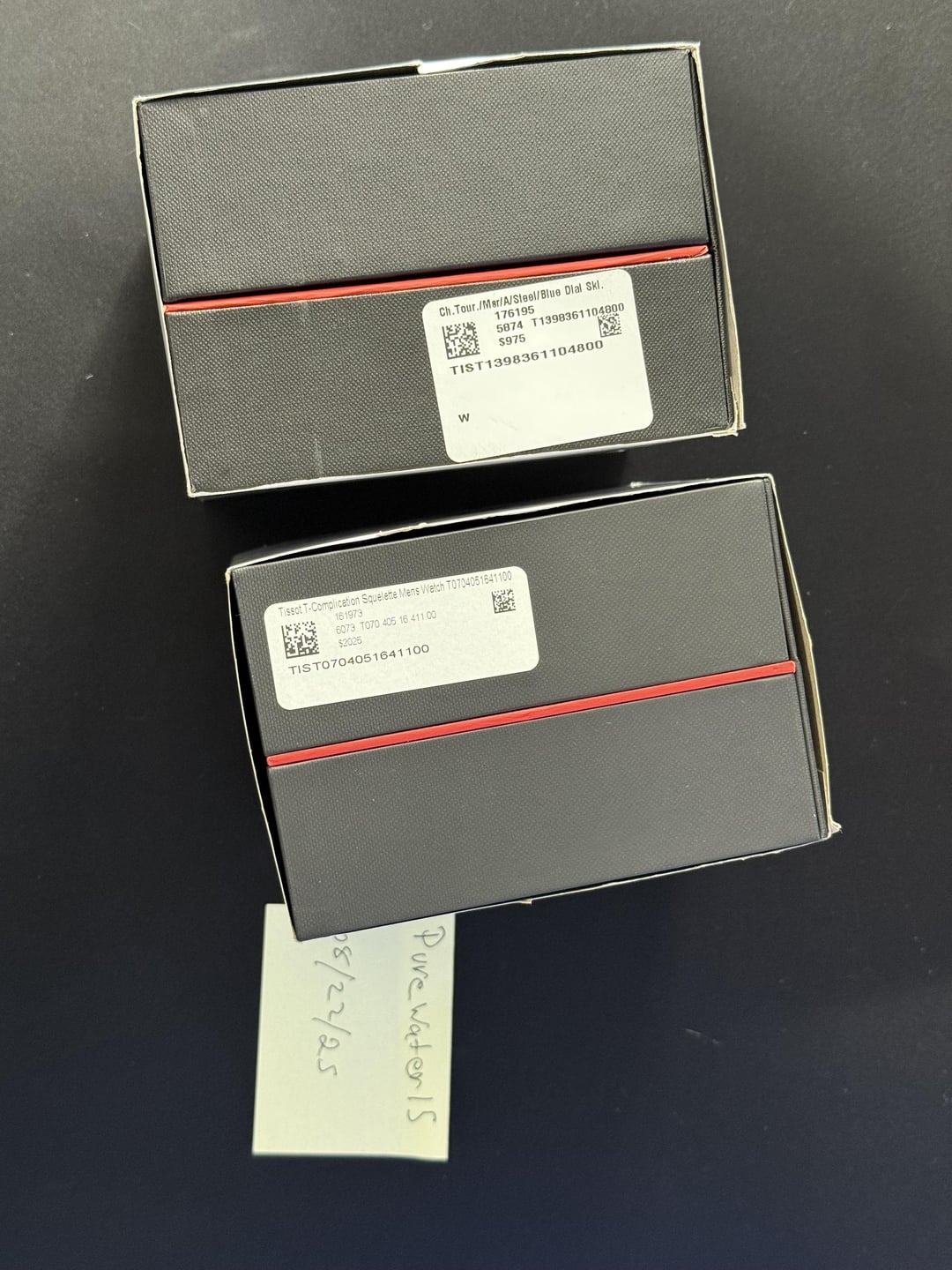 Hey everyone, Selling two of my Tissot skeleton watches as is. Both are in excellent condition, lightly worn, and come with original boxes, paperwork, and tags. Only selling because I don’t use them. ⸻ ⌚ Included: 1. Tissot T-Complication Squelette (T070.405.16.411.00) Price $850 plus shipping • Manual-wind Swiss mechanical movement • 43mm stainless steel case • Skeletonized dial, sapphire front and back • Leather strap – in great shape, but I did added two extra holes since it didn’t fit me correctly (see photo) 2. Tissot Chemin des Tourelles Skeleton (T139.836.11.048.00) Price $550 plus shipping • Automatic Powermatic 80 (80-hour power reserve) • 39mm stainless steel case • Skeleton blue dial, sapphire front and back ⸻ 💰 Price: bundle $1,300 + shipping UPS PayPal Goods & Services or zelle ⸻ 🛡️ Additional Info: Ask questions • Willing to FaceTime/video verify