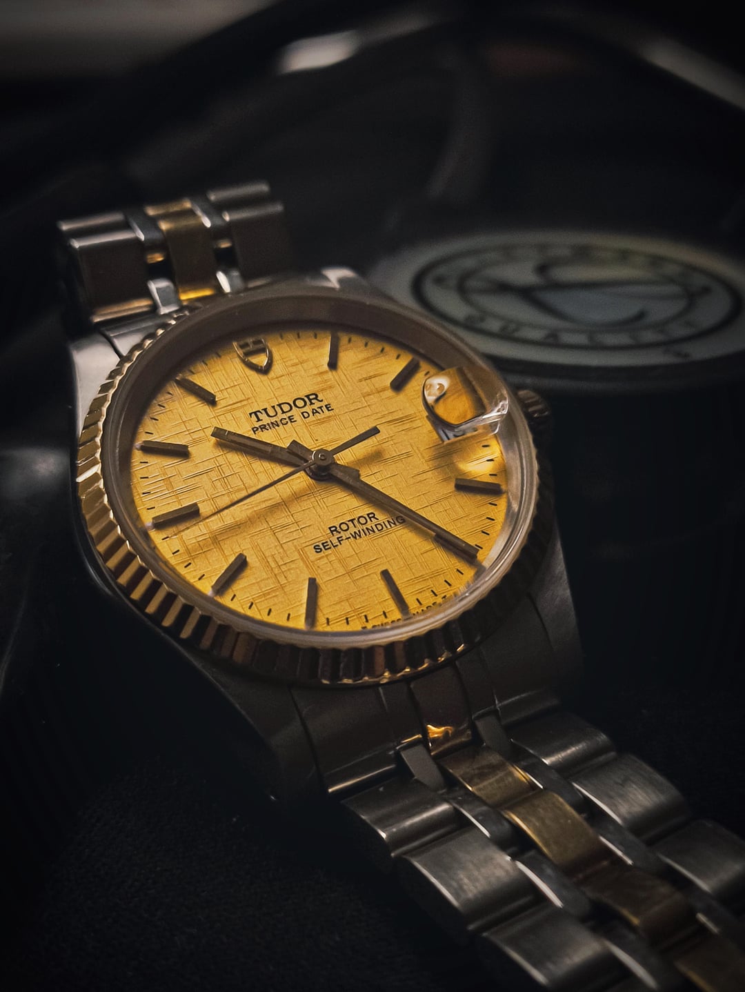 Tudor Prince Date Day Steel-Gold Case Yellow Warranty Swiss Made