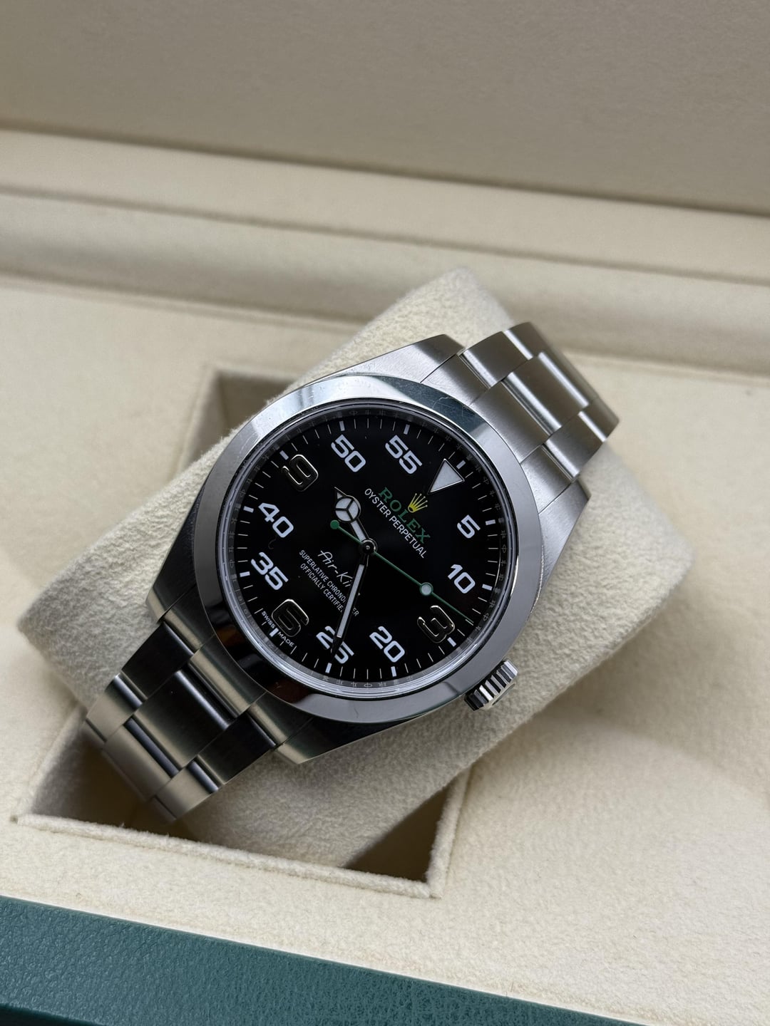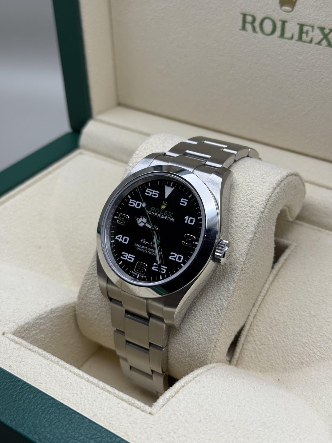 | Rolex Oyster Perpetual Air King Black Arabic Dial Steel Men's Watch 116900-0001 river_city_luxury (525) |