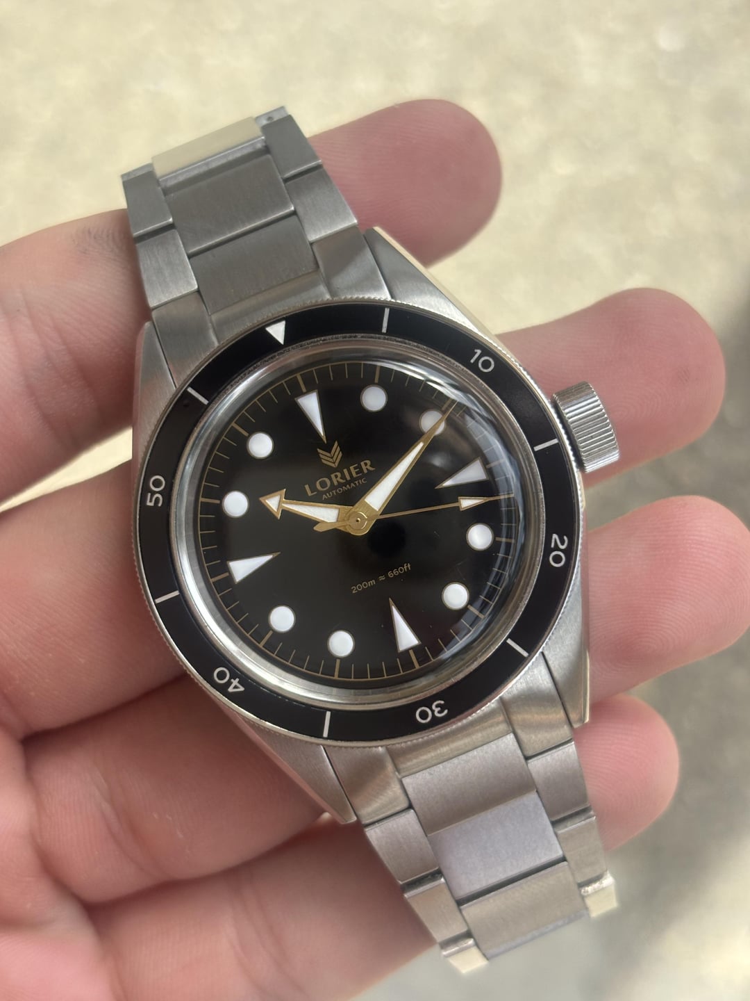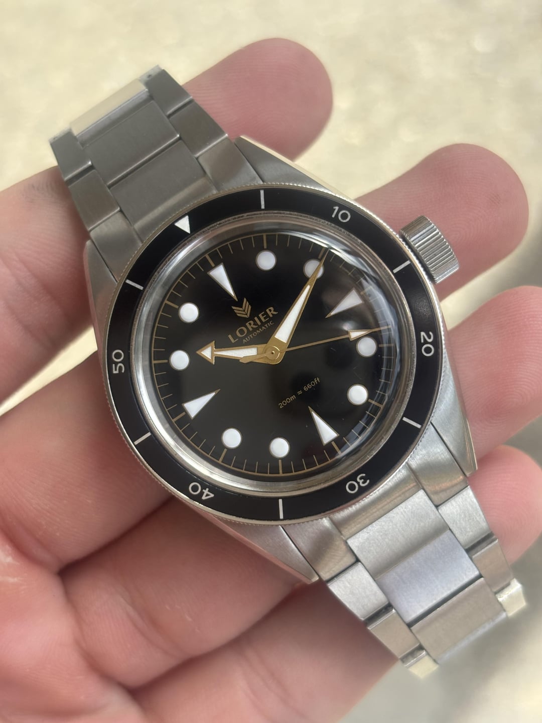 [WTS] Lorier Neptune In good shape. Has scratches on the clasp and bracelet. Case is solid. Crystal has some micro scratches. Running strong. Comes with box, no pouch. No extra links. Sized to about a ~ 6.75 in wrist. Asking $399 shipped CONUS PayPal, Venmo, Wire