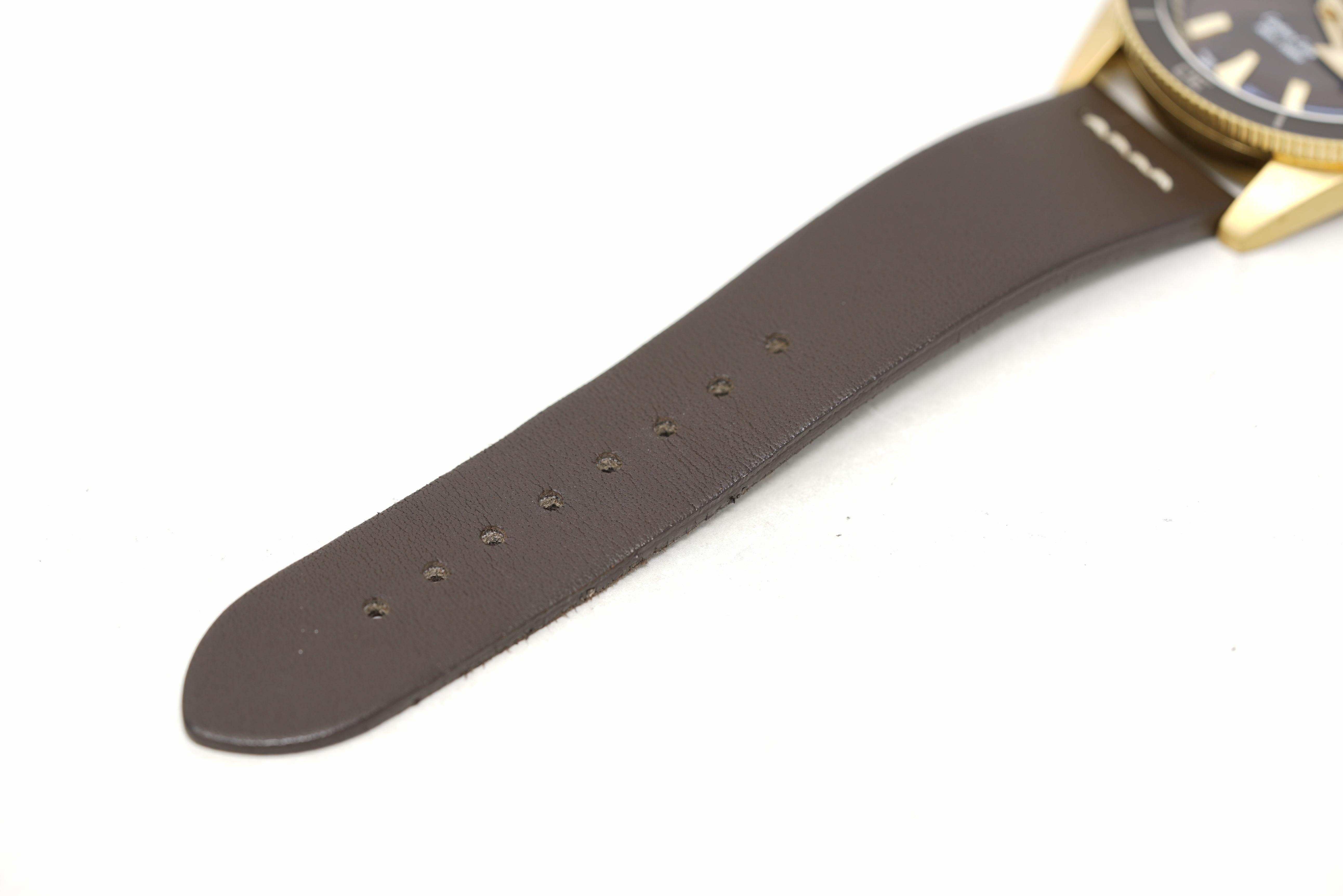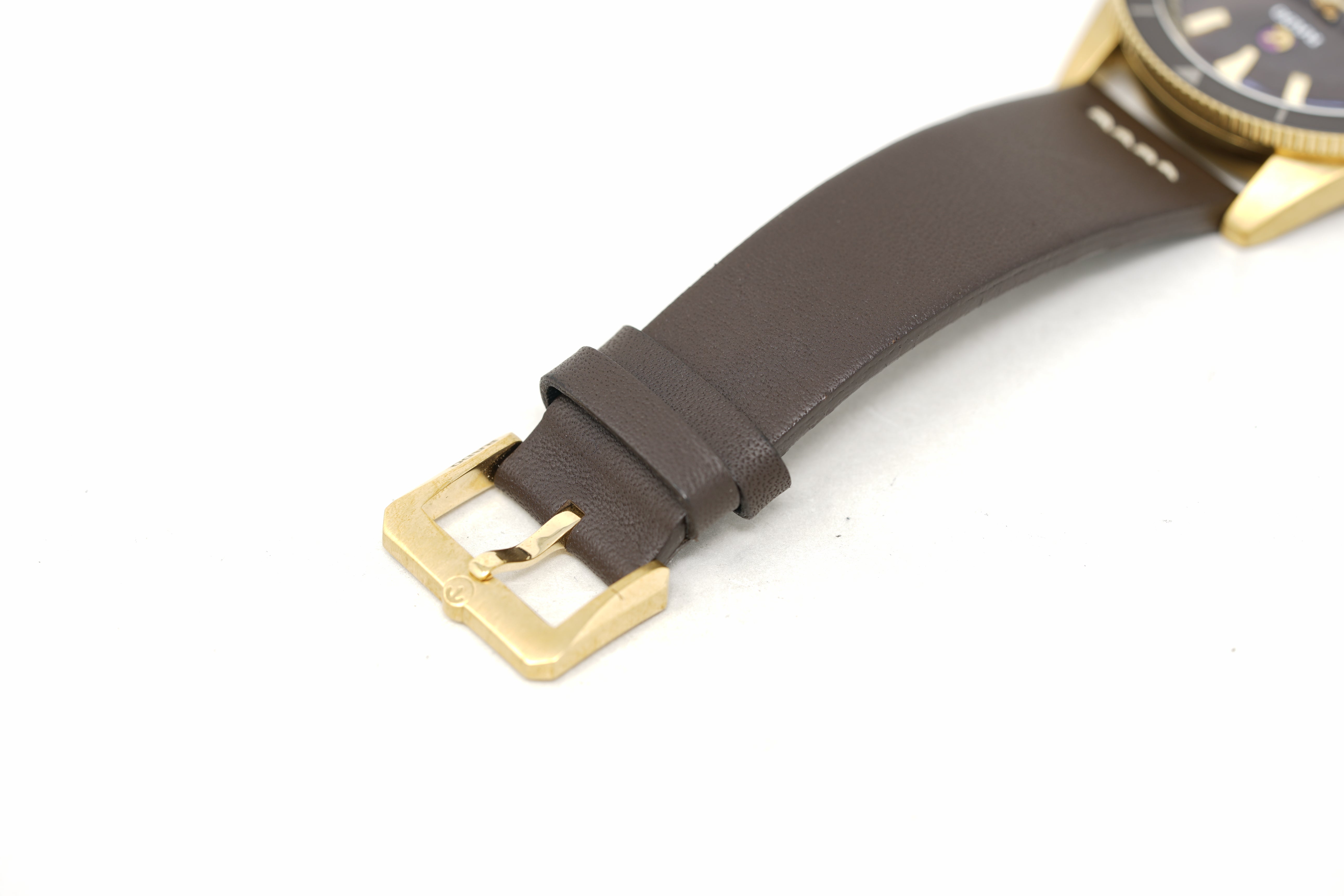 This pre-owned watch is in 94% condition due to faint marks on the sides and back of the case. The strap is in 93% condition due to slight wear and creasing. Originally purchased in September 2024, this watch comes with its inner and outer box, instruction manual, warranty card, hangtag, and the one-year Topper Pre-Owned Select warranty.