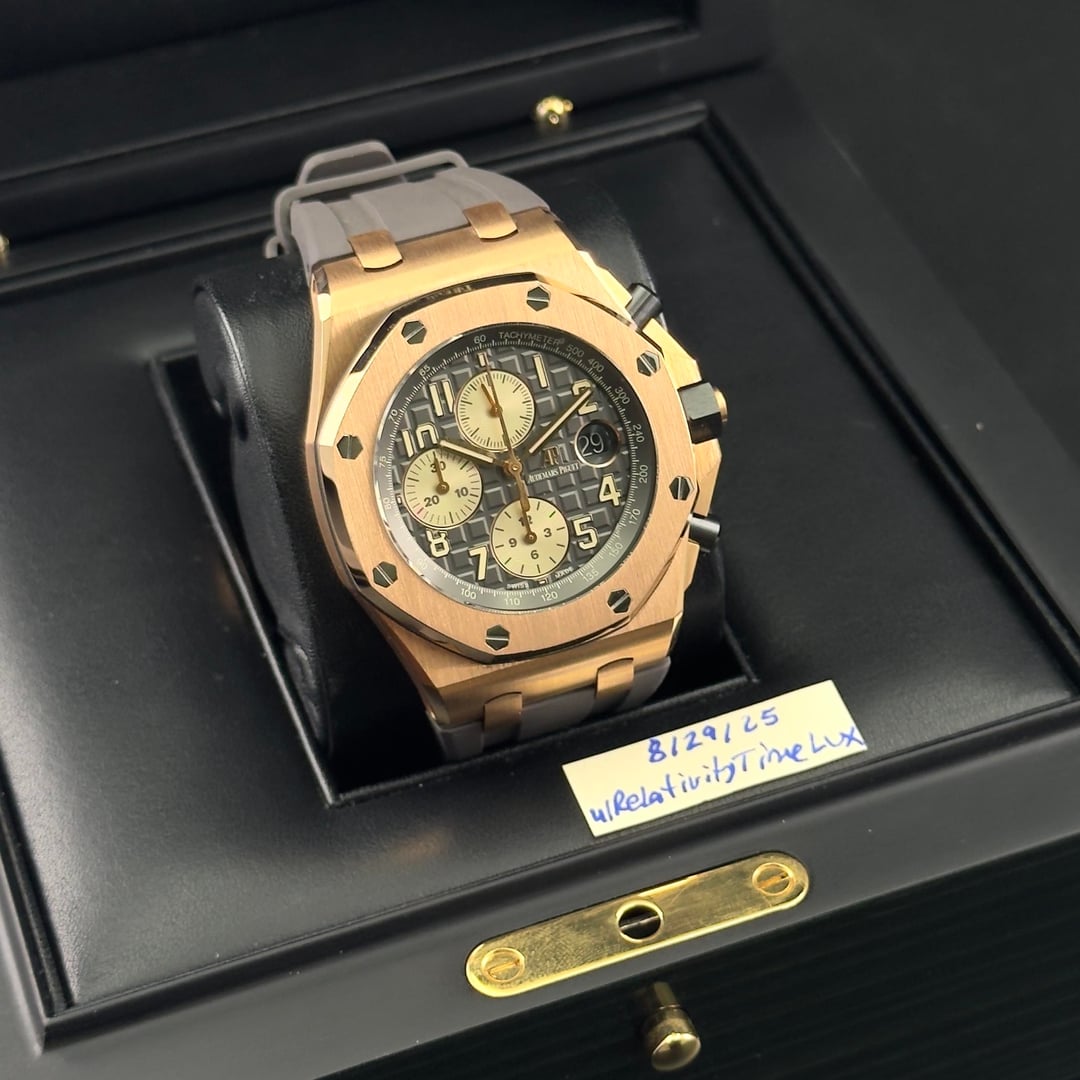 **Key Details:** * **Condition**: Very good condition, showing minimal signs of wear. See detailed photos for full transparency. * **Included**: Inner and outer AP boxes, hang tag, booklets, warranty card, and an additional AP leather strap. * Reference: 26470OR.OO.A125CR.01 \* K Series **Asking**: 34,850 RelativityTimeLux All pics -> [https://imgur.com/a/ap-half-brick-grey-dial-complete-hCp2vFv](https://imgur.com/a/ap-half-brick-grey-dial-complete-hCp2vFv) Timestamp -> [https://imgur.com/Liq94S7](https://imgur.com/Liq94S7)