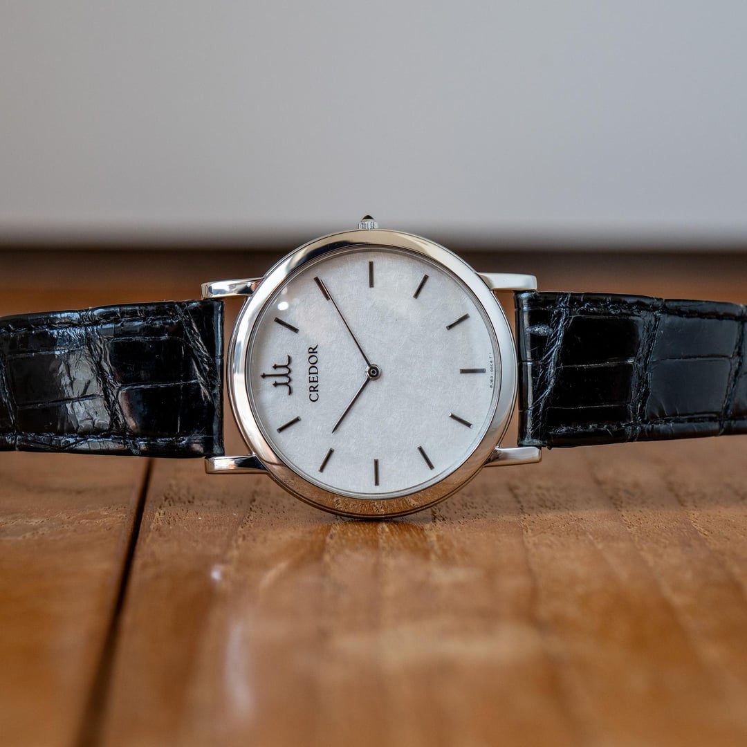 # Reference: **Model:** Credor Platinum GBAT031 **Production Date:** December 2013 **Timestamp:** [https://imgur.com/a/1mQVmbQ](https://imgur.com/a/1mQVmbQ) **Album:** [https://imgur.com/a/oM1UjB7](https://imgur.com/a/oM1UjB7) # Features: **The Design.** Not just a pretty face - though it certainly is very pretty. The GBAT031 pairs a solid platinum case with a beautifully textured dial, and it’s ultra-thin. The sleek profile comes courtesy of a quartz movement - making this piece more affordable than most ultra-thing Credors. But don’t let me undersell it - it’s quartz, but it’s no slouch. **The Movement.** Inside is a legendary 8J thermocompensated HAQ, which represents Seiko’s last whatever the cost approach to making quartz movements, before being replaced by the more economical 9F calibre seen in Grand Seikos. Like the 9F, the 8J boasts accuracy of ±10 seconds per year, but dedicated testing by the WUS community shows the 8J consistently outperforms the 9F across all temperature ranges: **The Release.** Released in 2010 with a price tag of ¥840,000 (\~$9,500 at the time), the GBAT031 was part of Credor’s impeccably dressy Signo Collection. The collection wanted its watches to be a subtle sign that the wearer had dignity and class - a brazen mission statement, but one that makes sense when you consider this watch’s discreet elegance. Call it stealth wealth, call it IYKYK - the philosophy fits. **The Dial.** The dial texture is reminiscent of the newly released “Cherry Blossoms” SBGH341 - designed to look like cherry blossoms petals hiding under fallen snow. While I can’t find any official confirmation of the GBAT031 carrying the “Snowflake” name, one glance its dial shows it easily could have. # Details: **Condition:** In great condition overall. Some swirls and hairlines may be visible on the platinum case, but there are no marks of any significance. **Scope**: No box or papers. On the original strap and buckle **Movement**: 8J Thermocompensated HAQ **Dimensions:** \- Case width: 34.0mm \- Lug to Lug: 39.0mm \- Case Thickness: 6.8mm \- Lug Width: 18mm **Price:** Priced at **$3635 + shipping**. Various payment methods accepted. Not accepting trades. Transaction Fees paid by the buyer. **Of note:** Nothing to report.