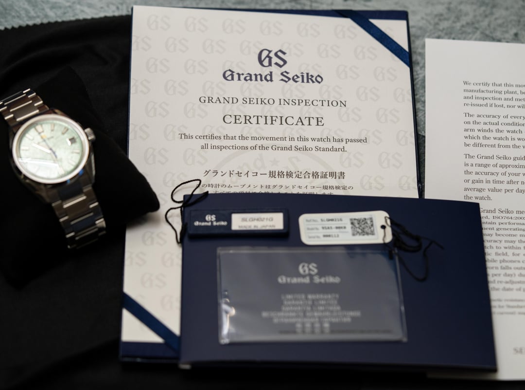 For sale is the [Grand Seiko SLGH021 "Genbi Valley"](https://grandseikogs9club.com/chronicle-9/evolution-9-hi-beat-36000-80-hours-slgh021/), "A mechanical watch depicting the mysterious scenery of the Genbi Valley." Brand new and unworn. Purchased from AD and has active warranty, with warranty card and number verifyable on Grand Seiko's website. This is 1 of 1000 peices produced and is sold out everywhere. Watch was purchased in March 2025 and is in **UNWORN, 10/10 condition** (Any imperfections seen in images is only dust). Full set includes * All boxes (outer white sleve, blue cardboard box, internal carrying case box) * Grand Seiko inspection certificate with sleve * Warranty card, stamped by AD and dated March 2025, with all fields filled out with valid info * Fully linked bracelet, unsized, with clasp partially stickered. With 18K Gold GS logo * Serialized hang tag with warranty QR code * Blue GS price hang tag Offered at **$9000** + shipping (bank wire or Zelle only, **no trades**). Ships from NJ Thanks for looking! Hit me up with any questions.