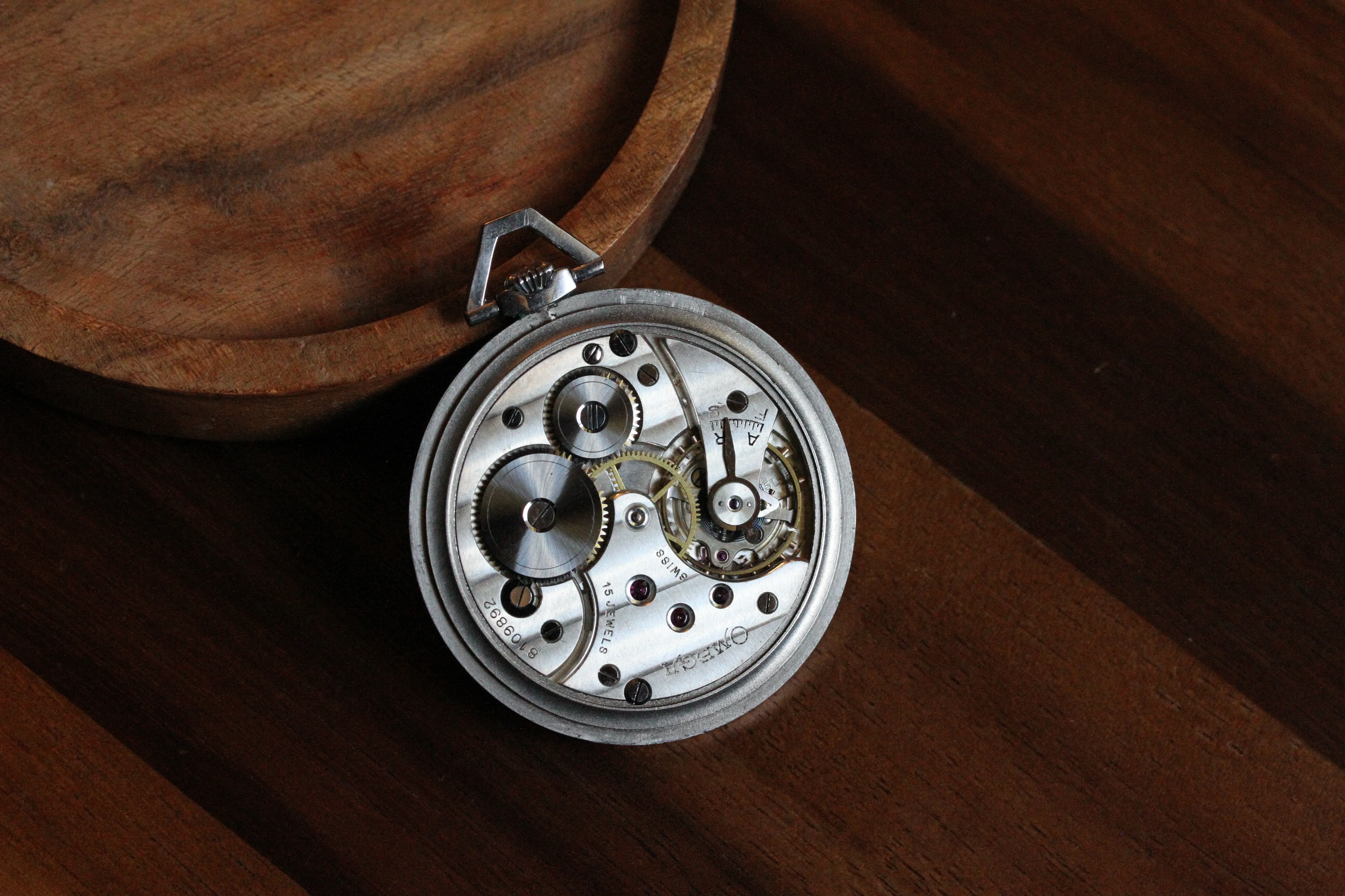 Up for sale is a lovely Omega pocket watch. The stainless steel case houses a 37.5L-15P movement in running order. Service history is unknown. I recommend a service for regular use.