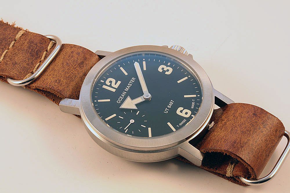 Je vous propose ici une Flieger seconde vie avec un boitier Ocean Master 41mm en acier poli en 3 pièces 41mm verre minéral, cadran aiguilles neuf avec un bracelet au prix de 570e plus les FDP.
