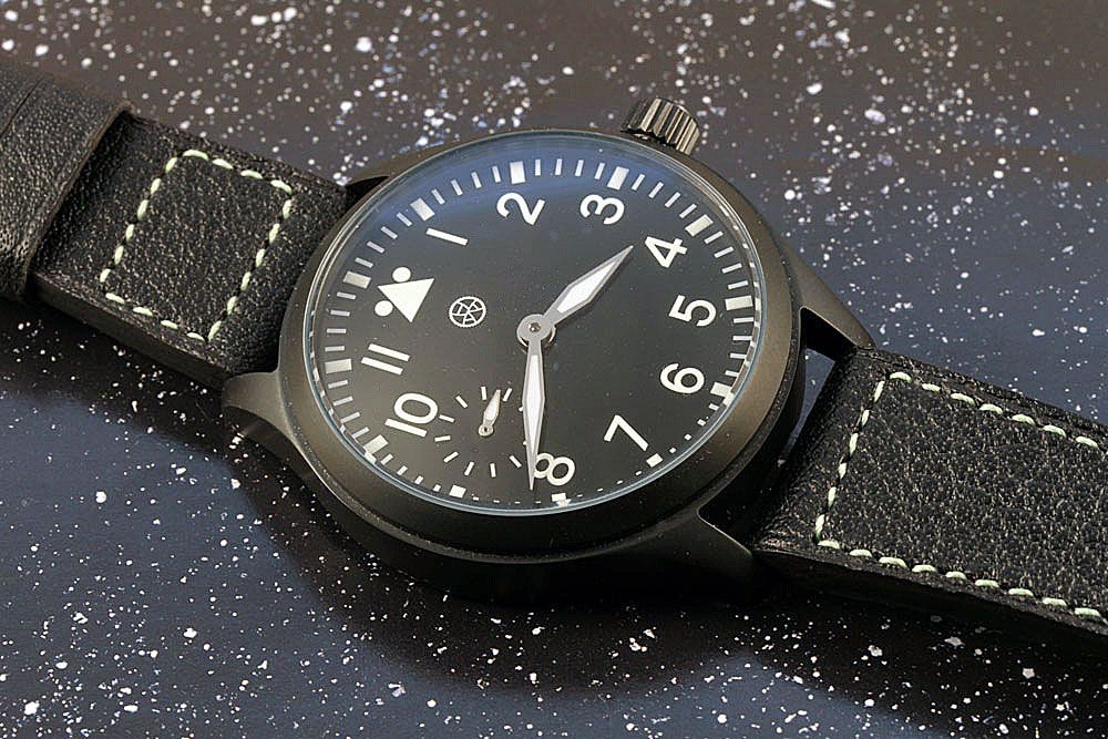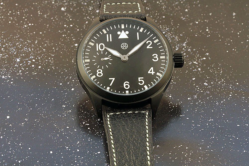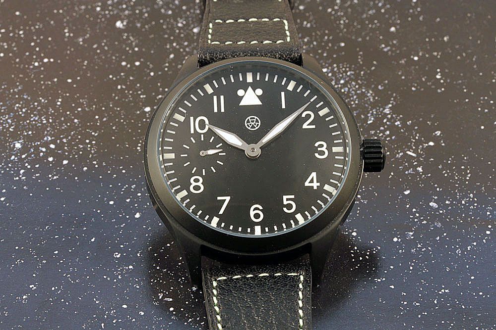 Je vous propose ici une Flieger seconde vie avec un boitier acier PVD noir en 2 pièces 44mm verre minéral hublot sur le fond vissé, cadran aiguilles neuf avec un bracelet au prix de 690e plus les FDP.