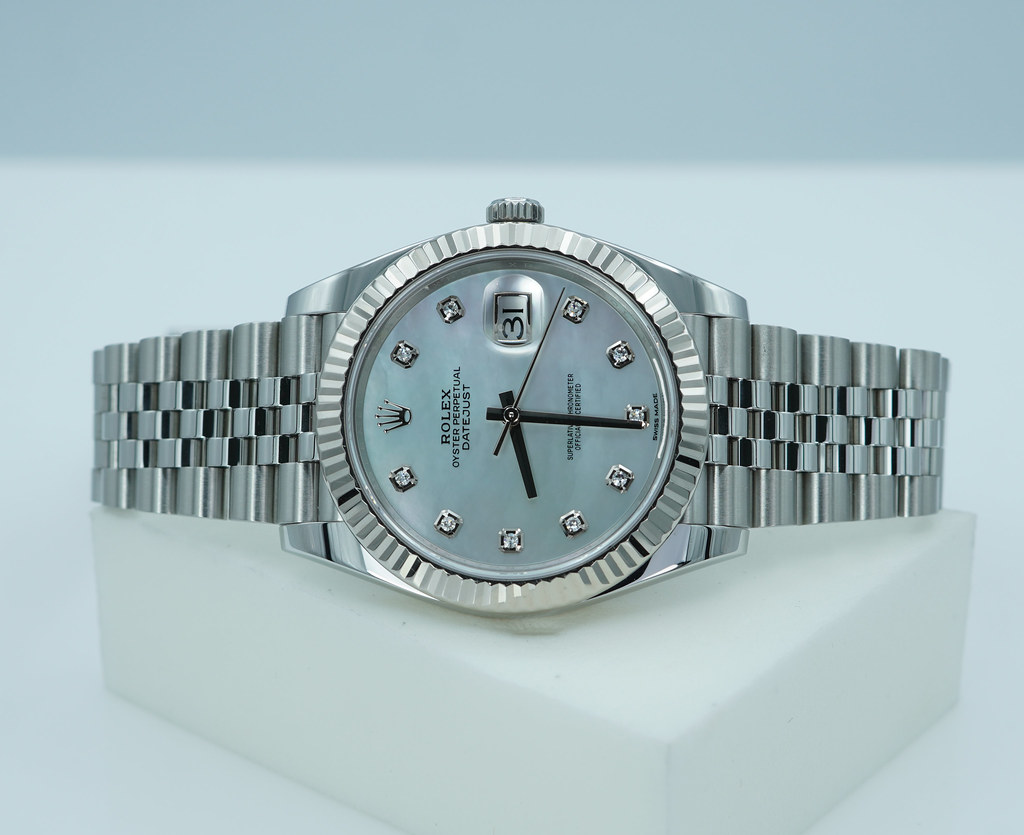 Hi, Selling An Excellent Condition & Very Beautiful 41mm Rolex 126334 Datejust 41 Stainless Steel with 18K White Gold Fluted Bezel & White Mother Of Pearl Diamonds Dial. It's on Steel Jubilee Bracelet. Purchased from Rolex USA Authorized Dealer in 05.2018. Watch running perfect with Non Issues. Full Links & Full Set.