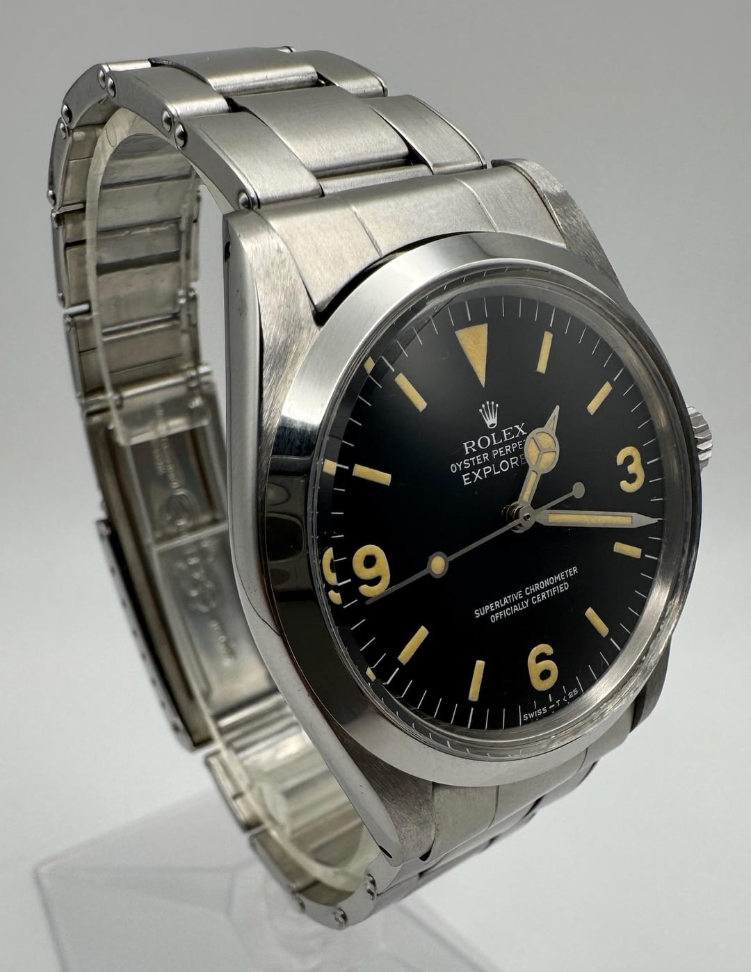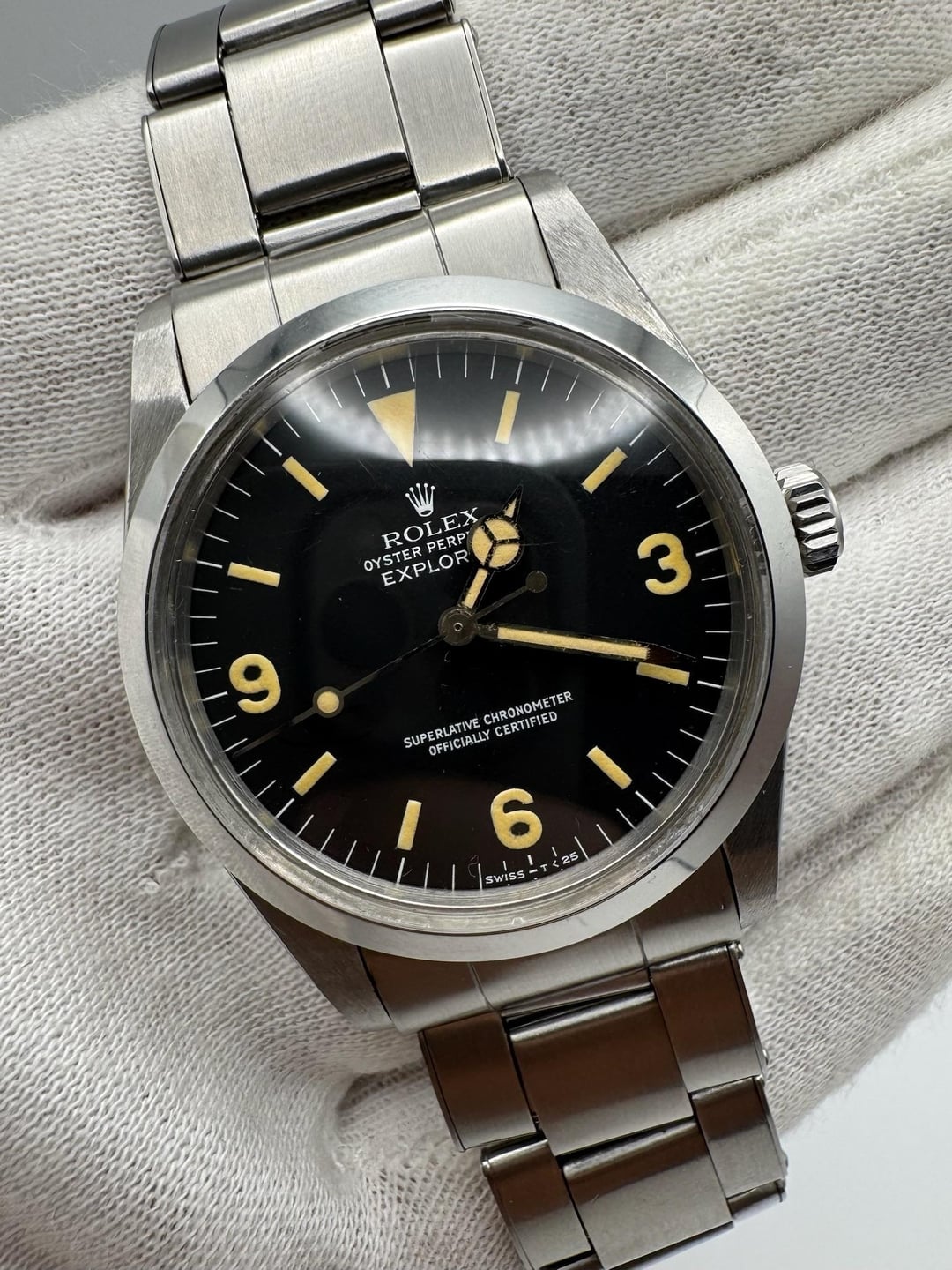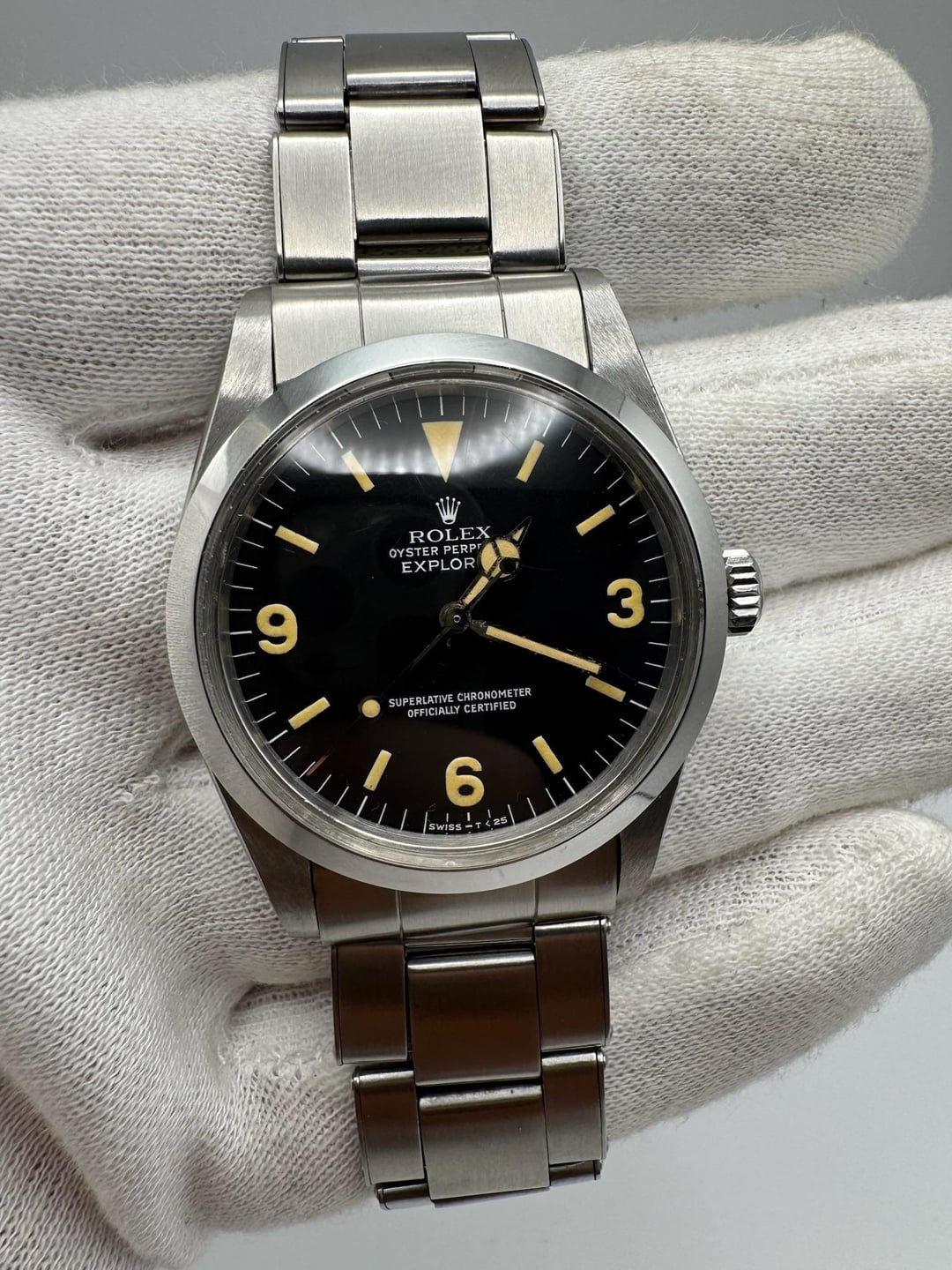 This stunning and very rare Rolex Explorer 1016 is presented in excellent to like new condition, showcasing the enduring appeal of one of Rolex’s most celebrated tool watches. The stainless steel case has been professionally polished only once to Rolex standards, maintaining very thick and sharp lugs that could easily pass for an unpolished example. Its black matte dial, from a later production period, displays a striking heavy yellow patina spread evenly across the indices with perfectly matching hands. Two very faint scratches are present between 8 and 9 o’clock but remain barely noticeable depending on lighting and angle. The lume continues to react under UV light, highlighting the watch’s authenticity. The original oyster riveted bracelet is in very good condition and retains all its links, adding to the completeness of this example. The movement was professionally serviced in September 2025 and runs reliably, with the watch also having been pressure tested to 3ATM (30m). A truly rare and highly collectible Explorer 1016, this piece stands out as an exceptional example of Rolex’s heritage. **Reference:** 1016 **Size:** 36mm **Year:** 1965 📜 Includes: Custom [travel pouch](https://bogossia.com/products/travel-carrying-case) ($50+ value) 💵 Price: $14,185 + FREE overnight shipping with FedEx fully insured. [Timestamp](https://imgur.com/a/T1KK7Jz) 🔥 Follow us on [Instagram](https://www.instagram.com/bogossiajewelers) 📍 Location: New York 🔒 Authenticity: 100% guaranteed, buy with confidence. We have 130+ reviews on Chrono24 with 150+ transactions, and Excellent rating score on Trustpilot. Visit our [profile](https://www.reddit.com/u/BoghossianJewelry/s/vm81HAdB7o) for links and references. 📦 Domestic Shipping: Ships with FedEx overnight, within 24 business hours of payment, from New York, NY to CONUS. The shipment is fully insured against damage, loss or theft. 🌍 International Shipping: Incurs an additional $100. 💳 Payment: PayPal/CC (+4%), Web, or Face-to-face deal in NY. 🔐 [Seller References](https://bogossia.com/authenticity) 🔗 [Other Listings](https://www.reddit.com/u/BoghossianJewelry/s/vm81HAdB7o) 📸 [IG: @bogossiajewelers](https://www.instagram.com/bogossiajewelers)