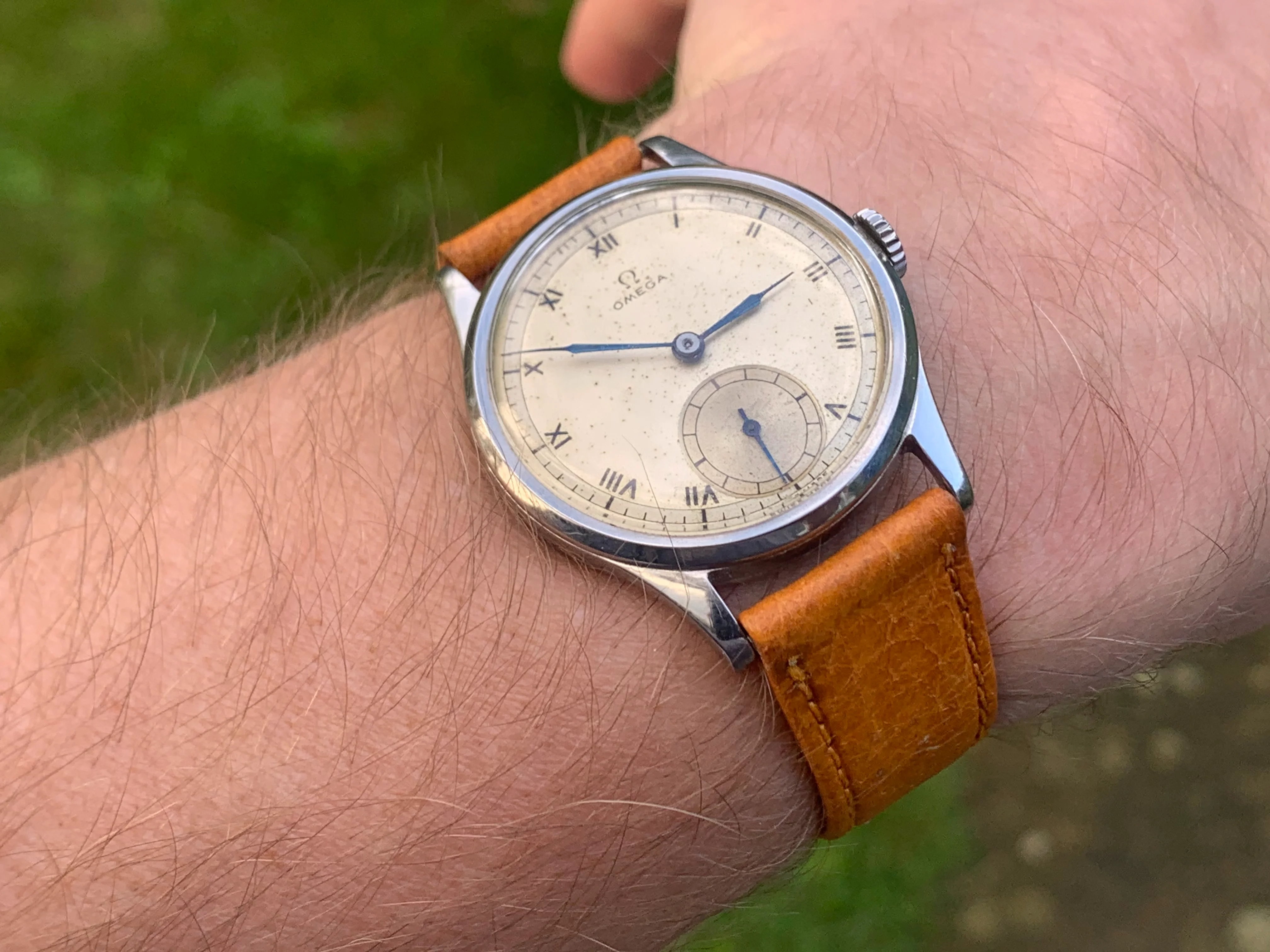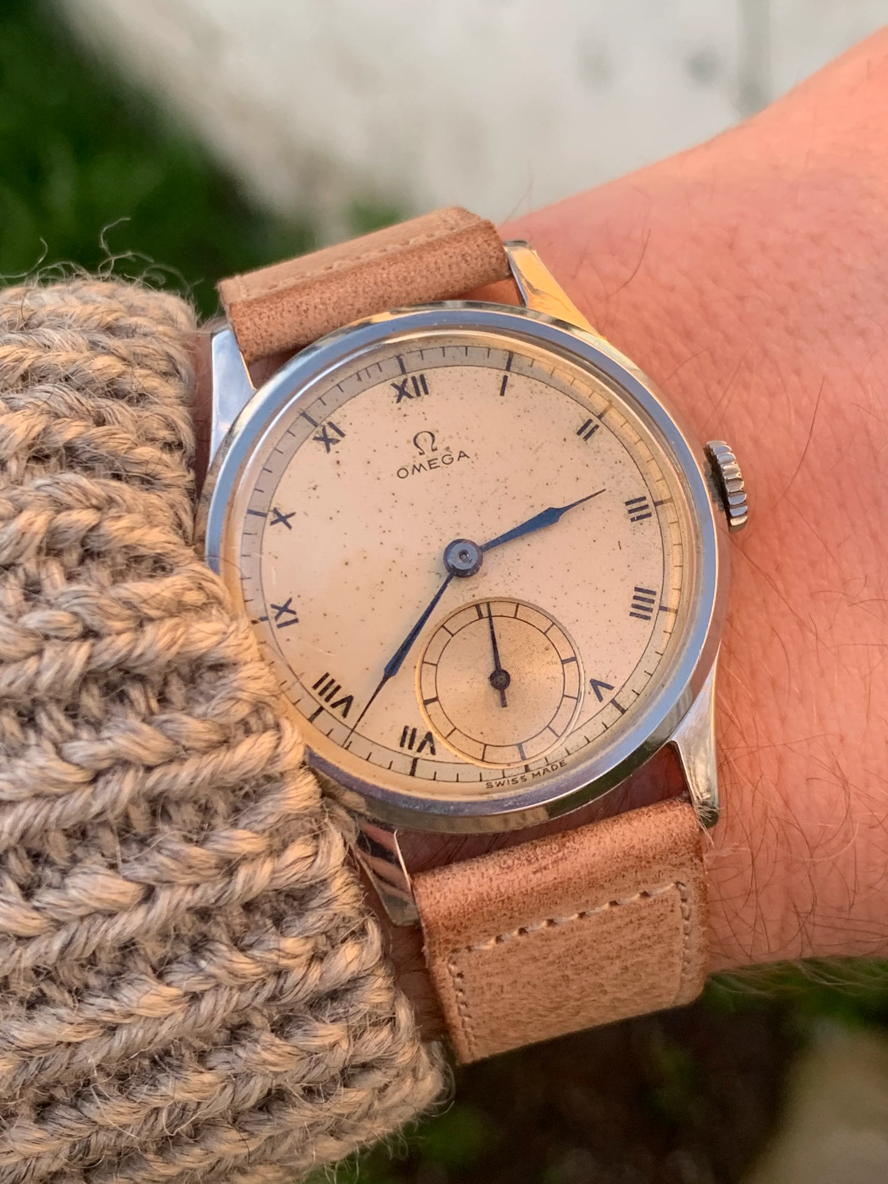 il y a 9 mois | 1945 Omega 30T2 reference 13322 British made Steel case with two tone dial and blued plume hands | Inconnu |