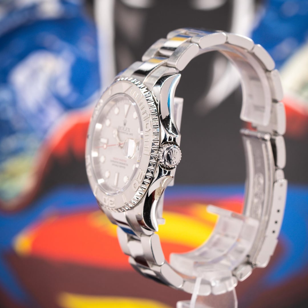 🏒🥅🚨 Rolex Yacht-Master 40MM Silver Dial Unpolished 16622 \- This timepiece as being in good unpolished condition. The box and papers are not included in the listing. \- The Rolex Yacht-Master (16622) showcases a robust 40mm steel case, paired with an elegant platinum regatta bezel. Its silver dial sports luminous hour markers and hands for optimal low-light visibility, alongside a practical date window at 3 o'clock, magnified by a Cyclops lens. Completing its design is an Oyster bracelet, secured with a branded folding clasp. \- 💰 Price: 💲9,150 USD Includes FedEx 2-Day U.S. shipping, additional tax to be collected for WI residents \- 🏦 Payment: Wire/Zelle payments preferred. \- 🪪 [Timestamp](https://drive.google.com/file/d/1rlFG3FZT2eE-w85nCmkNRqyuxL2t-3Z7/view?usp=sharing) \- Condition & Photography Please review all photos for the most accurate representation of this watch's condition. Our macro photography is designed to capture every detail, including the smallest imperfections, ensuring you can buy with complete confidence. \- Shipping & Service We ship fully insured overnight via FedEx for your peace of mind. We are happy to arrange a video call to show the watch and answer any questions—just reach out anytime. We guarantee the authenticity and accuracy of all our timepieces. Your satisfaction is our highest priority, and we strive for a smooth, transparent, and 100% positive transaction. \- As a dedicated hockey coach and passionate timepiece collector (@pucks\_timepieces), I've spent years immersed in the world of horology. I now combine this passion with my hockey-playing daughters, and together we create the unique presentations you see here. \- Our photography is inspired by contemporary artists like KAWS, Banksy, Joan Cornellà, Death NYC, and Shepard Fairey. This artistic approach adds a distinctive, creative character to how each watch is presented. \- When you purchase from me, you can expect a seamless experience. I'm highly responsive and happy to provide extra photos or details to ensure you feel great about your purchase. \- Trades are welcome! Please send photos and your requested trade value.