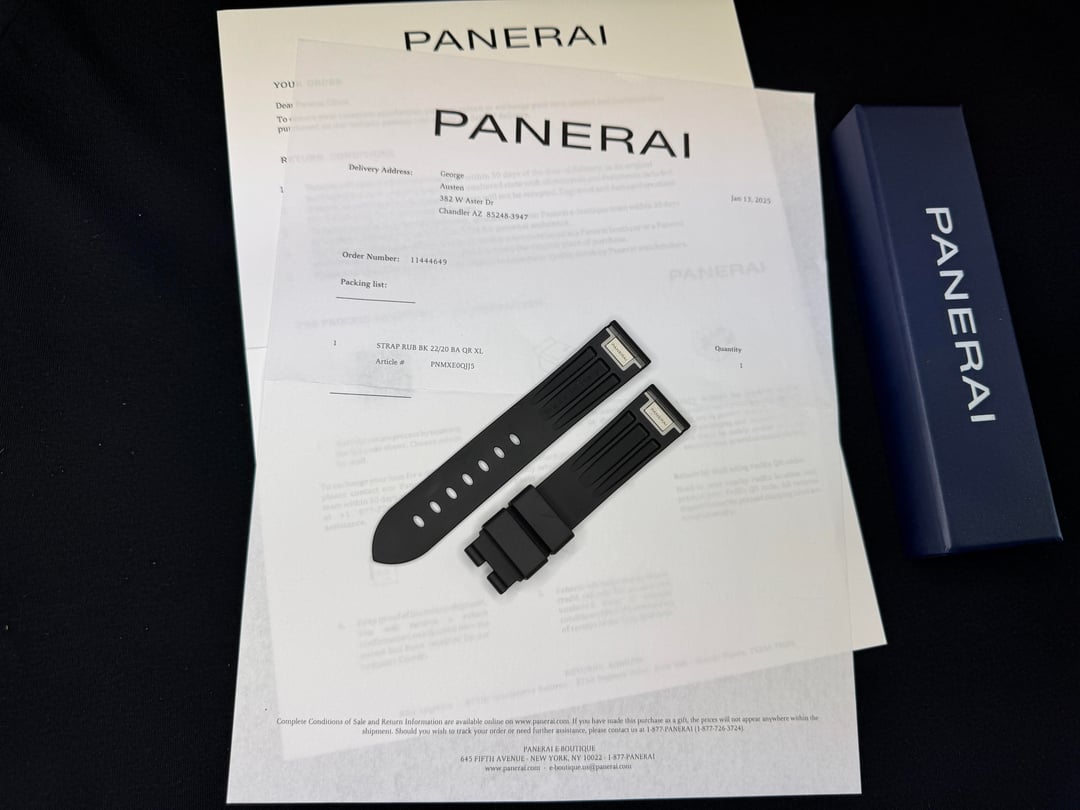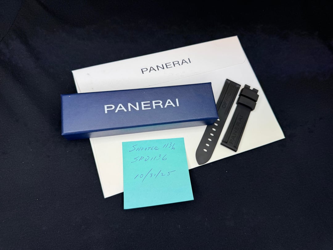 XL Panerai rubber 20/22mm strap. OEM bought direct from Panerai for $260. Has the PAM Click Release system. Comes with the original box and all paperwork. Only worn a few times before I sold my Submersible Bianco and is in near perfect condition. $200 OBO. Shipping included in the CONUS ONLY from Chandler, AZ. Venmo/Paypal F&F or Zelle accepted.