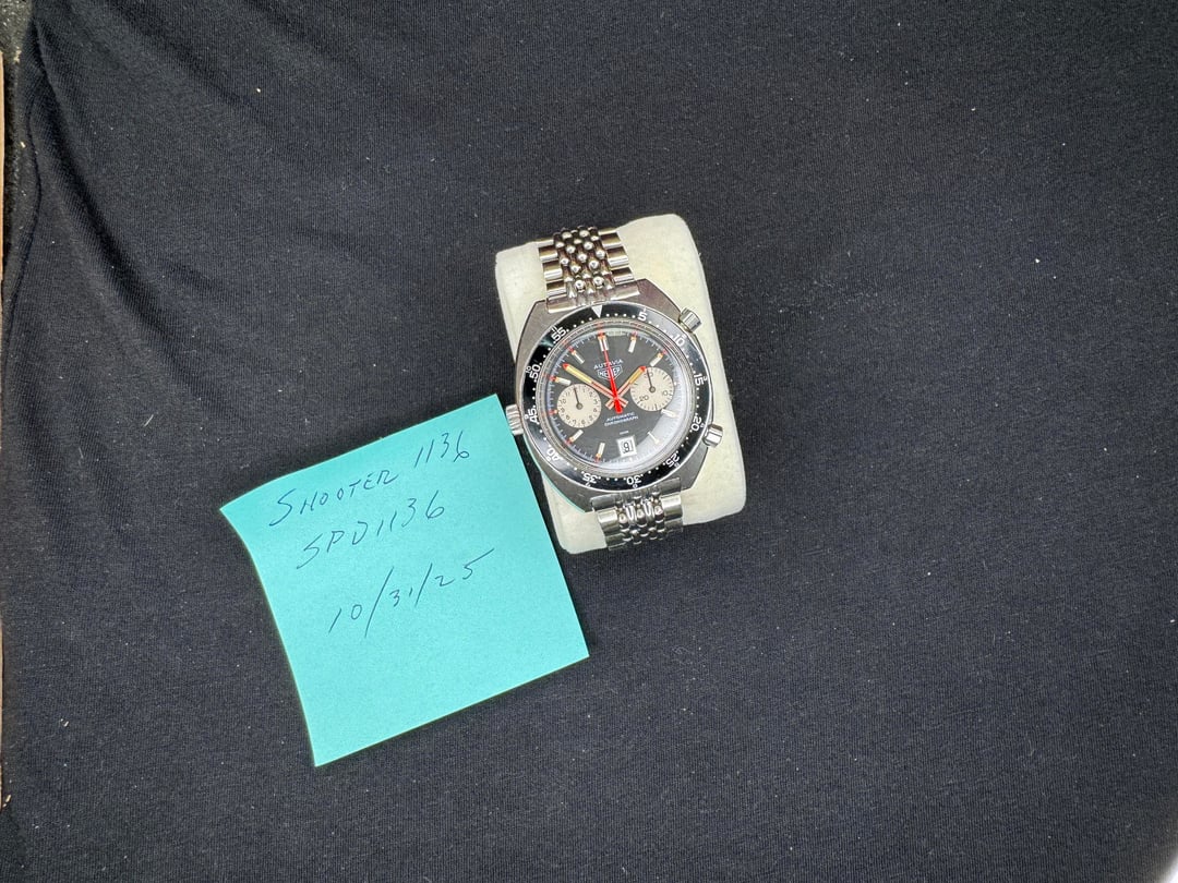 1970 Heuer Autavia Chronograph, Reference 1163 with the Caliber 12 Hand-Wind movement. This is the "pre-Viceroy" model, same generation. Watch is in amazing condition considering the age and the dial has a perfect warm faded gray patina. Comes as a watch only with the clamshell and box it was returned in following a full service from the Tag Heuer Vintage Shop in Switzerland. The service took 6 months as they sourced parts, completed in March of 2025, and cost over $1500. The case has NOT been refinished but the crystal was replaced. Keeps perfect time. Bracelet is not original, it is an aftermarket from Squinky, a new old stock 1970's beads of rice modified for the 1163 series and large enough for an 8" wrist. I have a significant investment in this one and they're very difficult to find in this condition with the proper service history. I'm asking $6500 but open to negotiation! I not need to sell this one so lowballs will be ignored. Link to video here: [https://imgur.com/a/8yBXFNi](https://imgur.com/a/8yBXFNi) Shipping is included from Chandler, AZ to CONUS ONLY. Payment by wire or face to face in the Phoenix, AZ metro area. Thanks for looking!