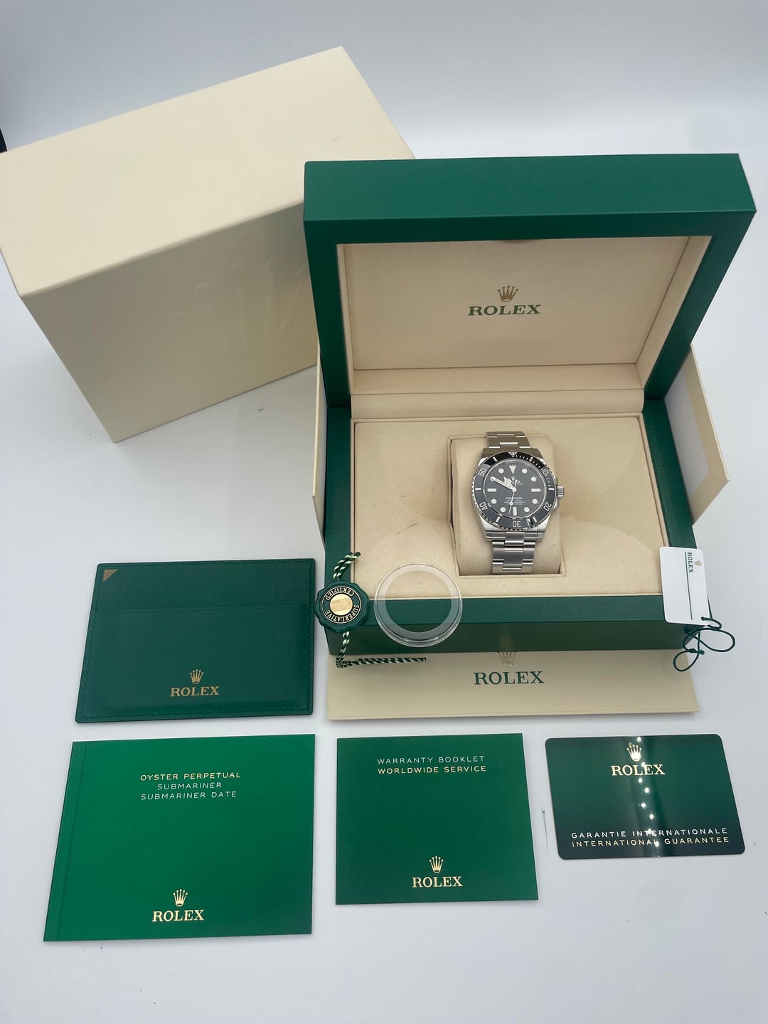 **\[WTS\] 2020 Rolex Submariner No Date 41mm 124060 Stainless Steel Black Dial BOX/PAPERS!** **Location**: U.S.A. / South Carolina **Condition**: This timepiece comes as a complete set with outer cream box, inner green wave box, instruction manuals, both hangtags, bezel protector, and warranty card (Dated june 12, 2020). The watch is in nice pre-owned condition with typical cosmetic wear throughout. Mechanically the watch is functioning as it should. Serial numbers & names are blurred in photos only for privacy reasons. **Price: $12000** **Payment Method: Bank Wire Transfer** **Shipping:** I ship fully insured Fedex overnight after clearing of the wire transfer. International buyers please reach out and we can discuss options. **Details** * Reference Number: 124060 * Bezel: Unidirectional Rotating with Ceramic Insert * Band: Stainless Steel * Case: Stainless Steel * Case Diameter: 41mm * Movement: Automatic * Crystal: Sapphire * Dial Color: Black * Functions: Hours, Minute, Second * Water Resistance: 300 Meters * Year: 2020 Pictures:[https://imgur.com/a/7roU3X8](https://imgur.com/a/7roU3X8) Timestamp:[https://imgur.com/a/1vqw7An](https://imgur.com/a/1vqw7An)