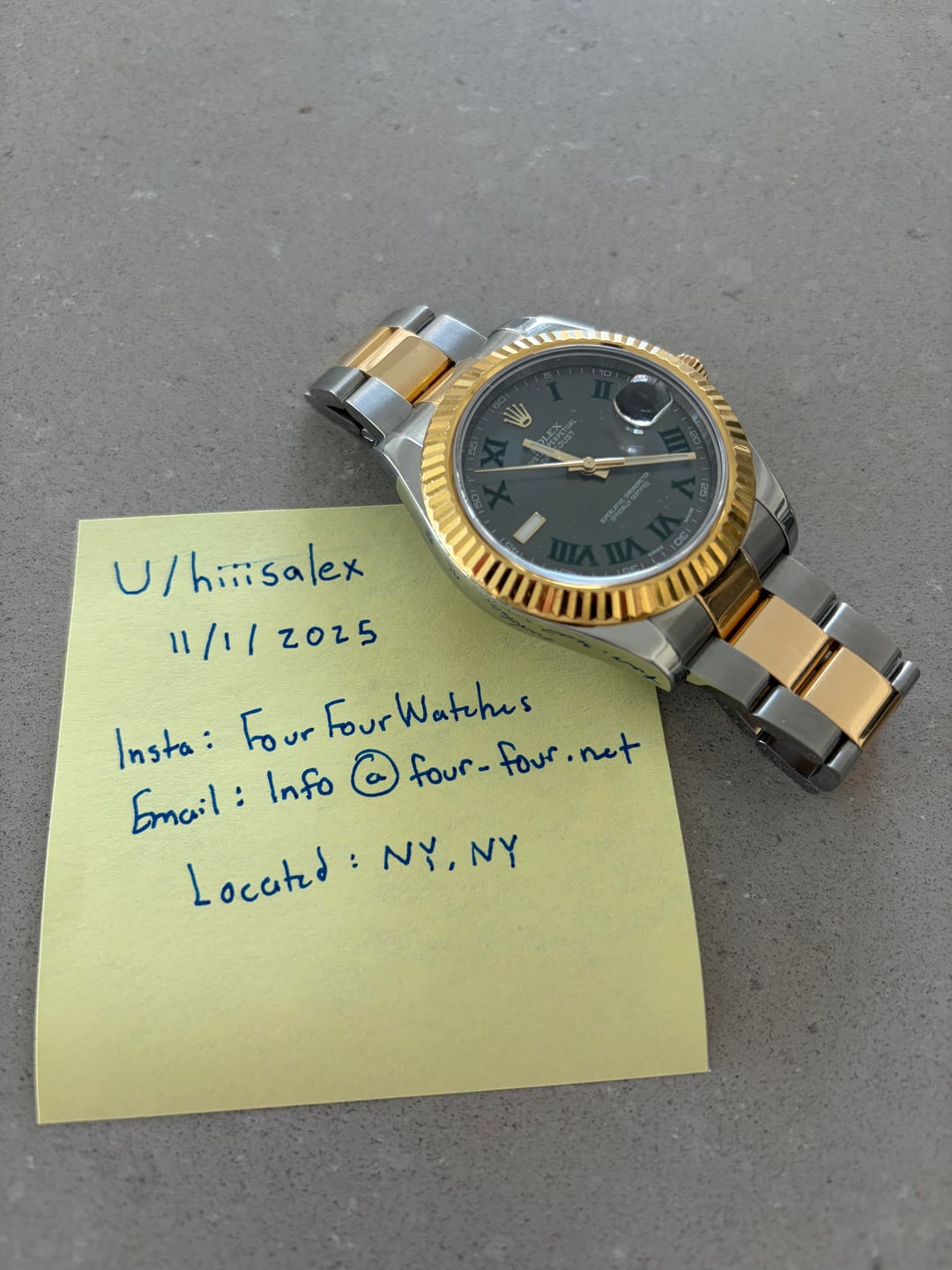 Hello Everyone, Long Time Lurker and Recent Buyer On This SubReddit. I am an independent dealer operating from New York, New York under the Name Four Four Retail LLC. IWJG Member and BBB Accredited. Today For Sale is this Mint Condition Rolex Datejust 41MM in Stainless Steel/Yellow Gold Reference. 116333- from my own personal collection. Watch Is Dated Circa 2016 - Making It A Last Of the Datejust II Line. I am unable to find paperwork and box - Believe it was lost in my moving a few years ago sadly. Asking $13,500- Open To Negotiation. Shipping Domestically Can be discussed - As well as Local Meetups. Feel free to contact me on Instagram at FourFourWatches, Pm me on Reddit, and I will be happy to show any further qualities necessary regarding the timepiece. Thank you all for reading this far.