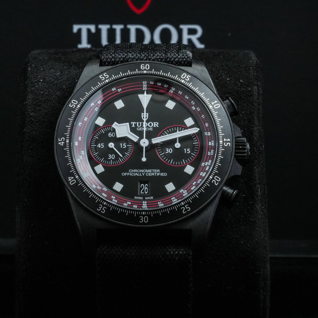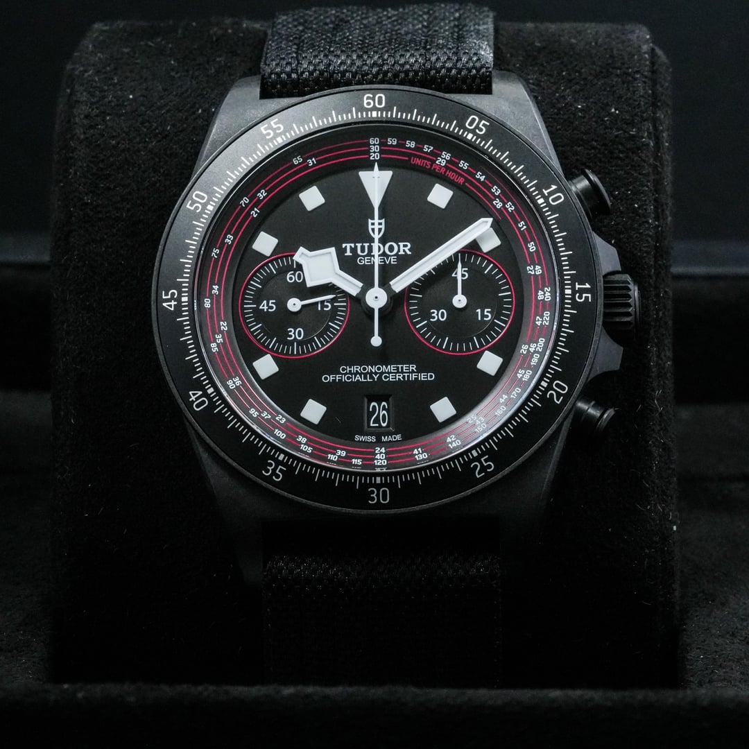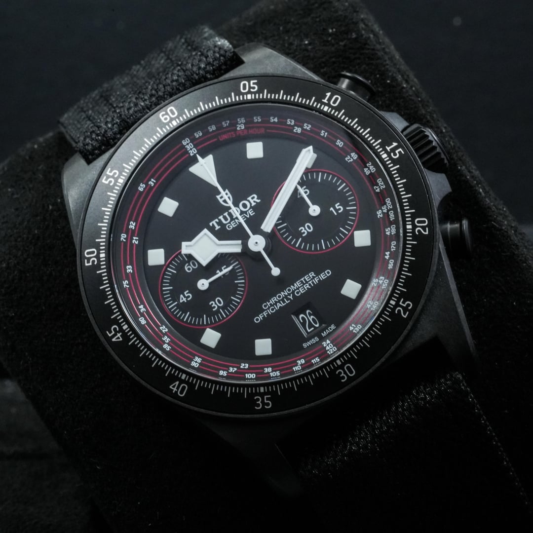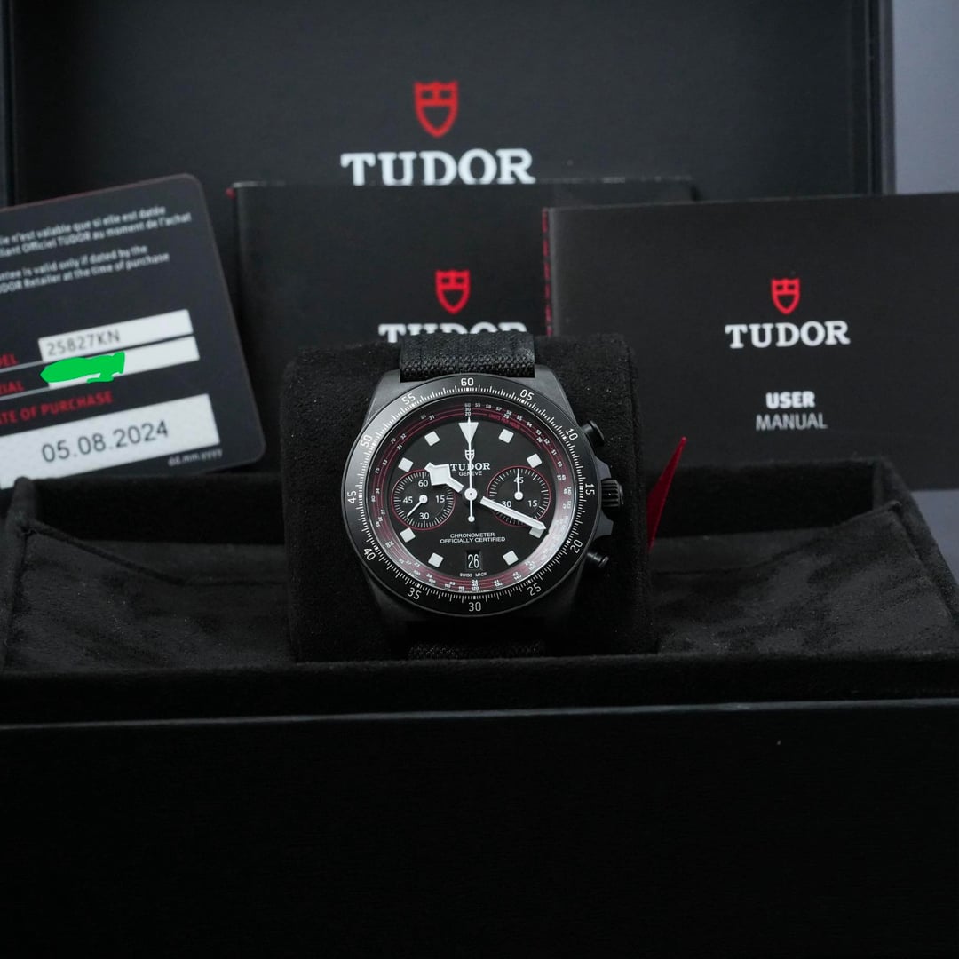 Designed with the Tudor Pro Cycling Team, the Pelagos FXD Chrono Cycling Edition is a lightweight 43mm titanium chrono built for performance. Matte black dial with red accents, fixed strap bars, and the MT5813 COSC-certified movement with 70-hour power reserve. This is an incredibly lightweight and comfortable watch. Brand new condition as well sold as a full kit Please view pictures carefully as I use a very strong macro lens to showcase any and all imperfections. Typically, this will embellish the imperfections and/or lead to the inevitable specks of dust. I am always happy to provide more pictures at different angles, whatever you're unsure of. I am a full time firefighter and am very involved in my community - my reputation is everything to me. Please feel free to reach out with any questions and I will answer promptly to make sure you are taken care of and we can have a smooth easy transaction. 3,999 with fully insured shipping included. Trades considered