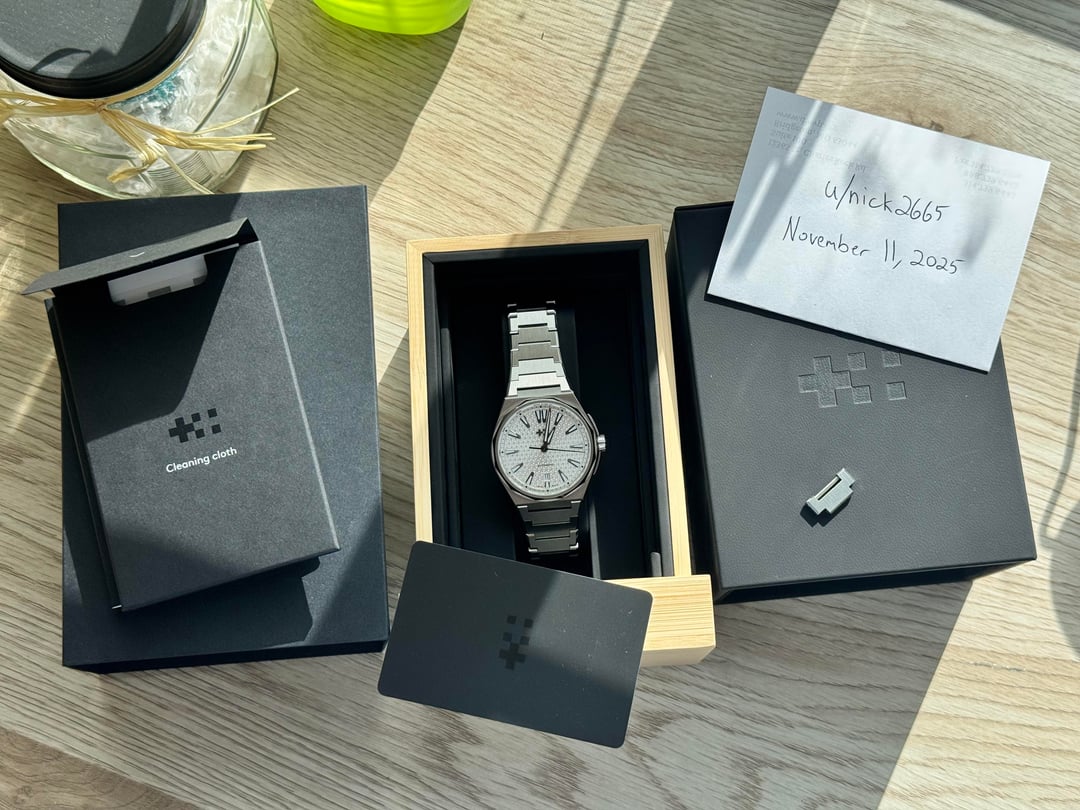 Pics : https://imgur.com/a/s0cyUyr Timestamp : https://imgur.com/a/RDCgIWp For sale today is my Christopher Ward 12 in Arctic White. I purchased this watch as “Nearly New” from CW in March of this year so it has almost 4.5 years of warranty left. This is the 40 mm version and is in good, preowned condition. There is a scuff on the bezel above 12 o’clock that I have tried to photograph. It’s not very noticeable during regular wearing. There are several marks on the bracelet from normal use. This has the newer version of the clasp that has microadjust. The sale includes full kit as received from Christopher Ward with warranty card dated 3/28/2025. I’m asking $900 shipped CONUS. NO TRADES PLEASE. I accept PayPal F&F, Zelle or Venmo. Thanks for looking.