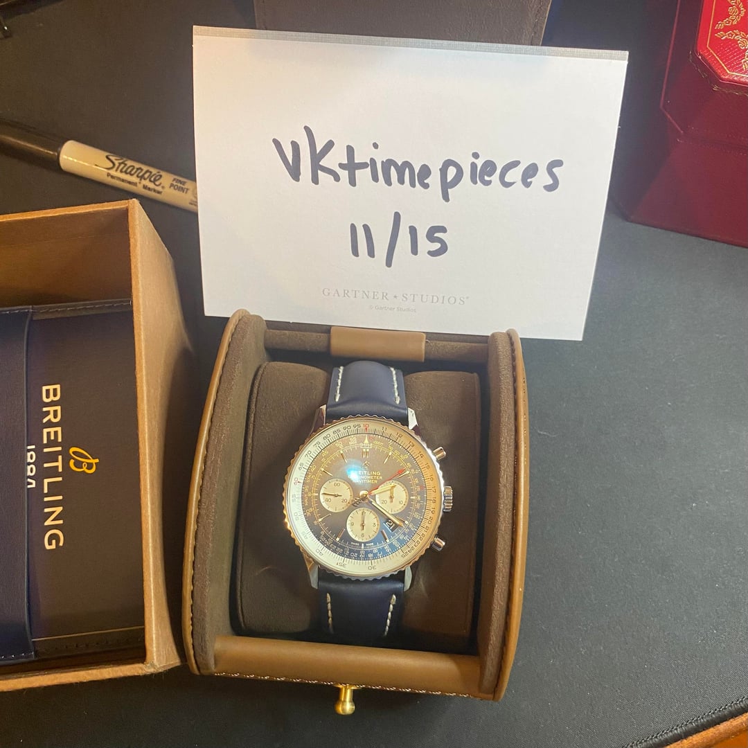 Breitling Navitimer B012 Chronograph 46 Ref. No. AB0127 - AB0127211C1X1 Price: $4,995 + label (Wire/Zelle) Specifications: - 46mm stainless steel case - Blue chronograph dial - Blue leather strap - B01 movement with 70 hour power reserve - Sapphire crystal - A few months left on the factory warranty Included: - Watch, boxes, extras, and warranty card (2021) Condition: - This watch is in great used condition. The crystal is clean but the AR coating has a few imperfections seen when under direct light. The case has a few light marks, but the watch looks immaculate on the wrist. The leather strap has tons of life left. The photos depict an accurate condition of the watch. The watch functions as it should. I accept payment via Wire Transfer or Zelle. Fully insured shipping will be provided at cost of buyer. Buyer-paid authentication & escrow services available upon request. Located in NJ, USA. Tons of deals done, and I have many references available. Feel free to reach out with any questions. I can be contacted through private message on Reddit, through email at [email protected], or on Instagram @vktimepieces.