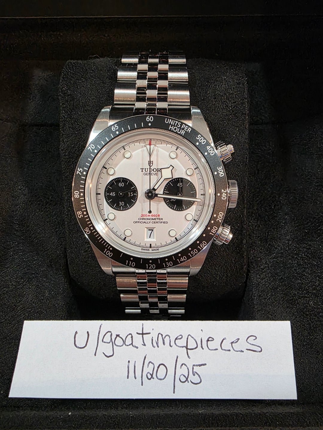 🔥TUDOR BLACK BAY CHRONO PANDA🔥 Reference: 79360N Year: October 2025 Dial: Beautiful White dial Case Size: 41MM Material: Stainless Steel Complete Set! Condition: BRAND NEW $5200 Shipped within US ZELLE/PAYPAL FF CC accepted +4% ***I have over 50 confirmed Reddit transactions! Buy with confidence!! **Crossposted** ***If you want to see more pictures or jump on a video call please feel free to message me***