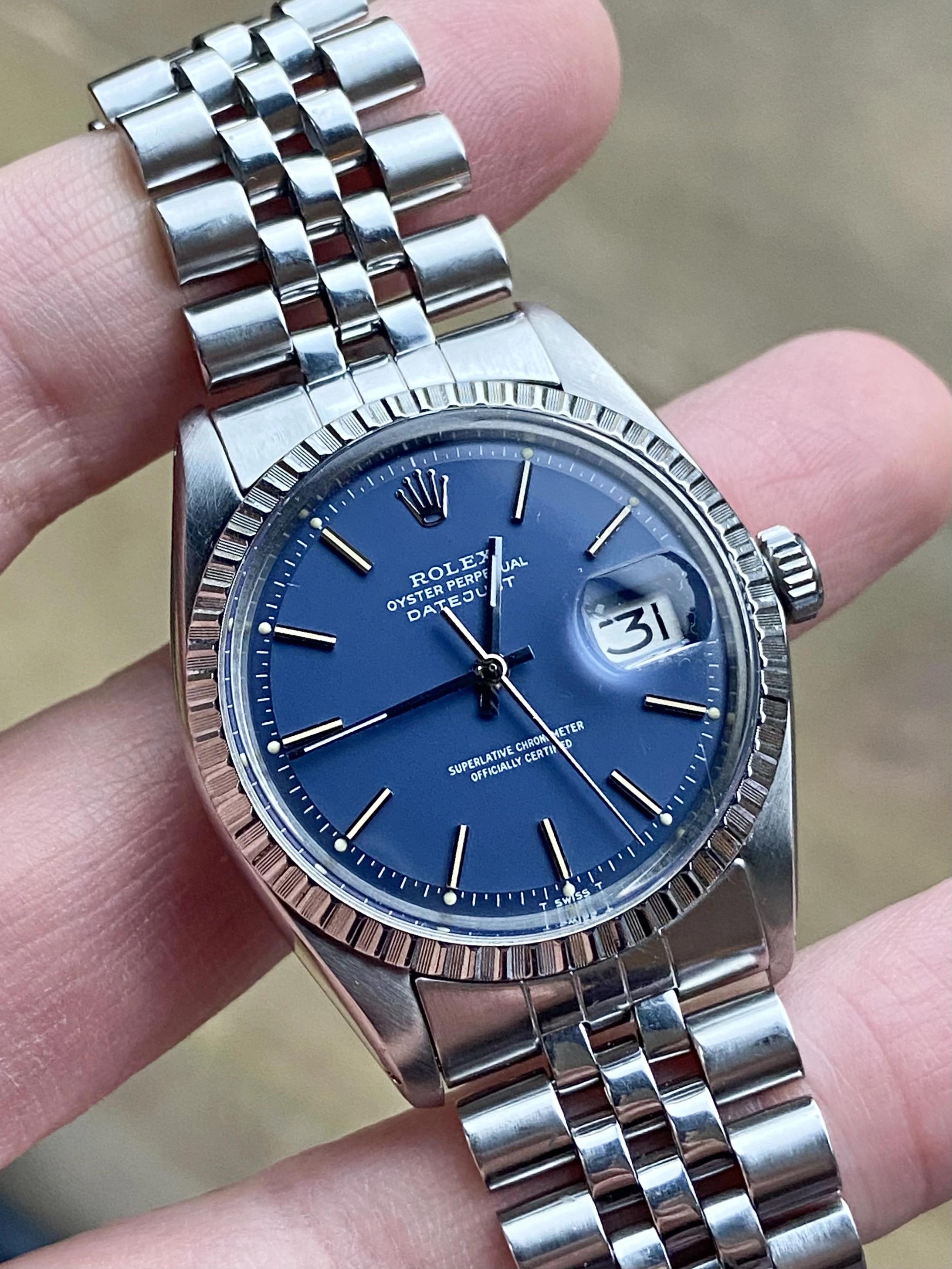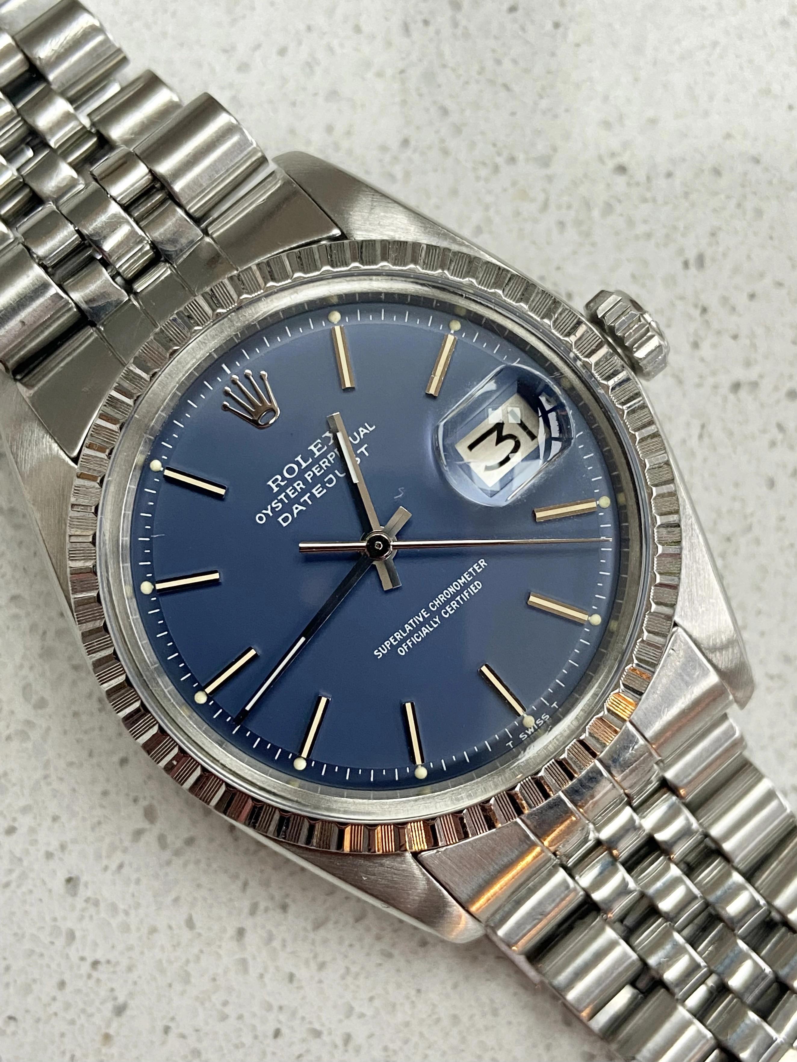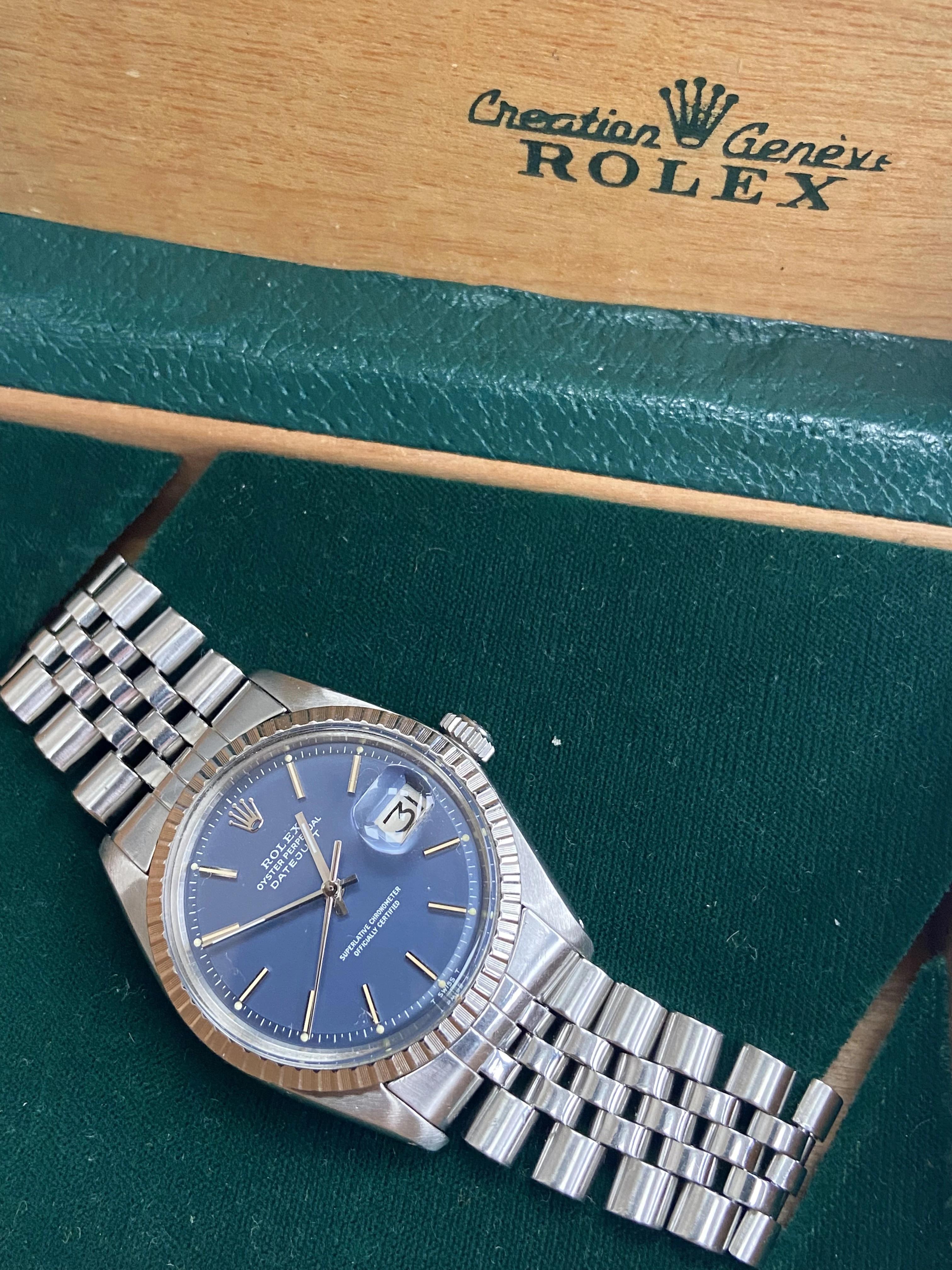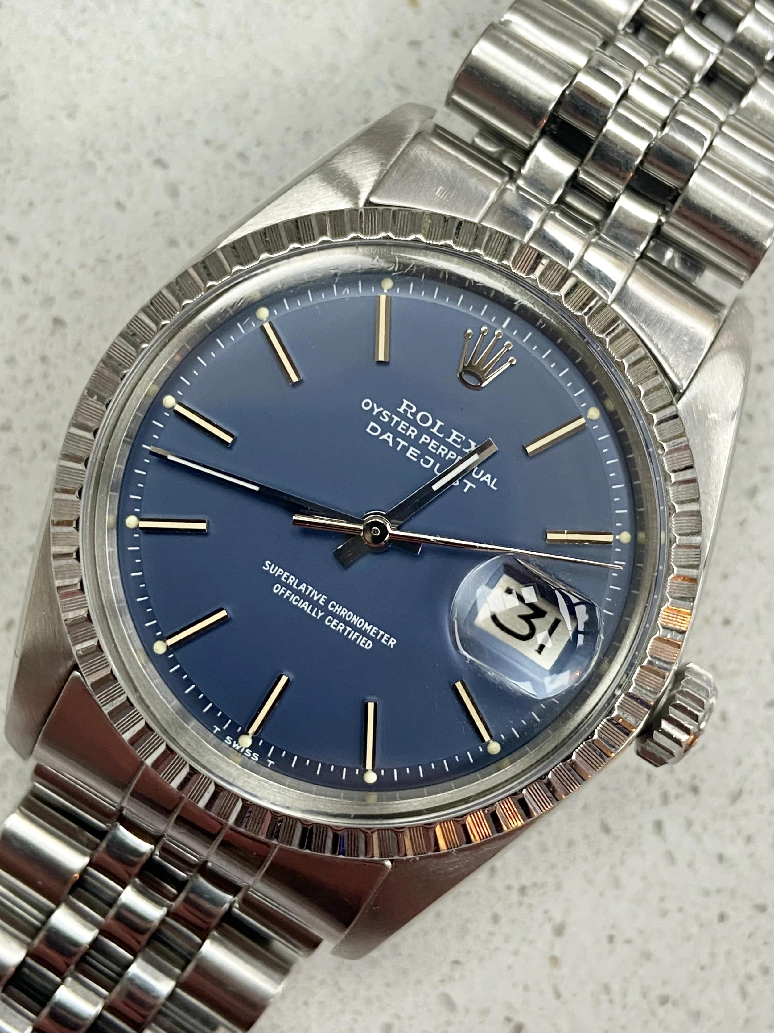 Vintage Rolex DateJust 1603 with Blue Dial and 62510H Jubilee Bracelet. Rolex Service History