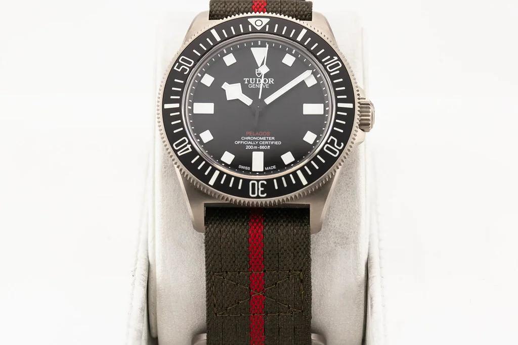 Up for sale is an unworn condition Tudor Pelagos FXD Black Dial with Fabric Strap, reference # 25717. It comes complete with all boxes, papers, booklets, hang tag, strap, and Tudor Warranty Card dated October 2025.