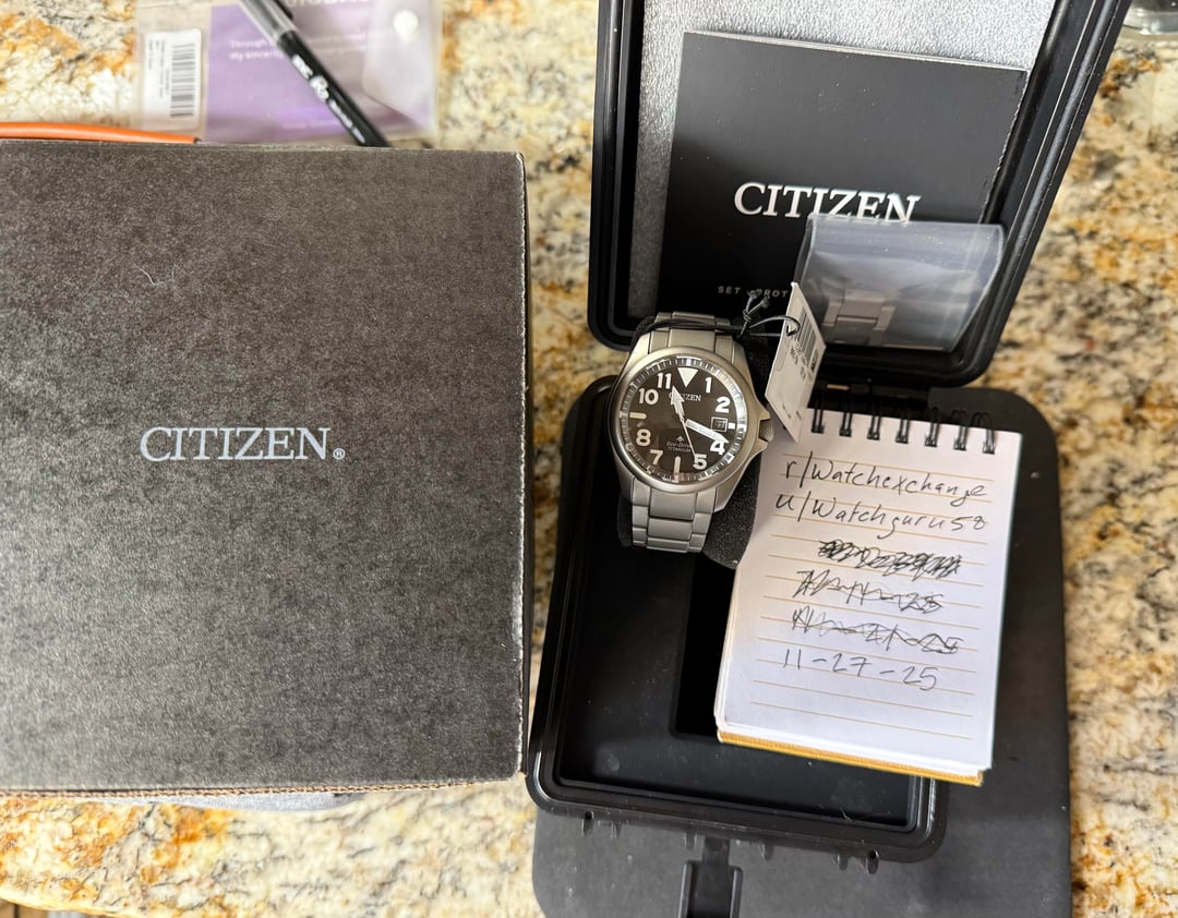 I’m selling my beautiful Citizen Promaster Tough Titanium Eco-Drive watch. This watch is in near mint condition with some very minor rub marks under the clasp area. These aren’t visible while being worn. The watch comes as a complete set to include the outer box, Pelican style case, instruction/warranty manual (Blank), all links and pins, and the hang tag. I’m only selling this one because I have two at the moment and have decided to let one go. This particular model has the very cool gray matte dial which is getting very hard to find. This has the Citizen proprietary lume which is one of the best out there. Glows like a torch. This is a 41 mm watch with a sapphire crystal. It houses the venerable E168 Eco-Drive movement. This also has the monocoque case which is awesome!! It has a screw down crown and it’s water resistant to 200 meters. I’m listing this at $295 USD NET to me (No fees to me) via Zelle, PayPal, or Venmo. This price includes USPS shipping to CONUS. I’m not interested in trades. I’m a longstanding member on all of the watch forums with perfect feedback so please buy with confidence. Please message me with any questions and thanks for looking. [Images/Timestamp](https://imgur.com/a/P7y04dk)
