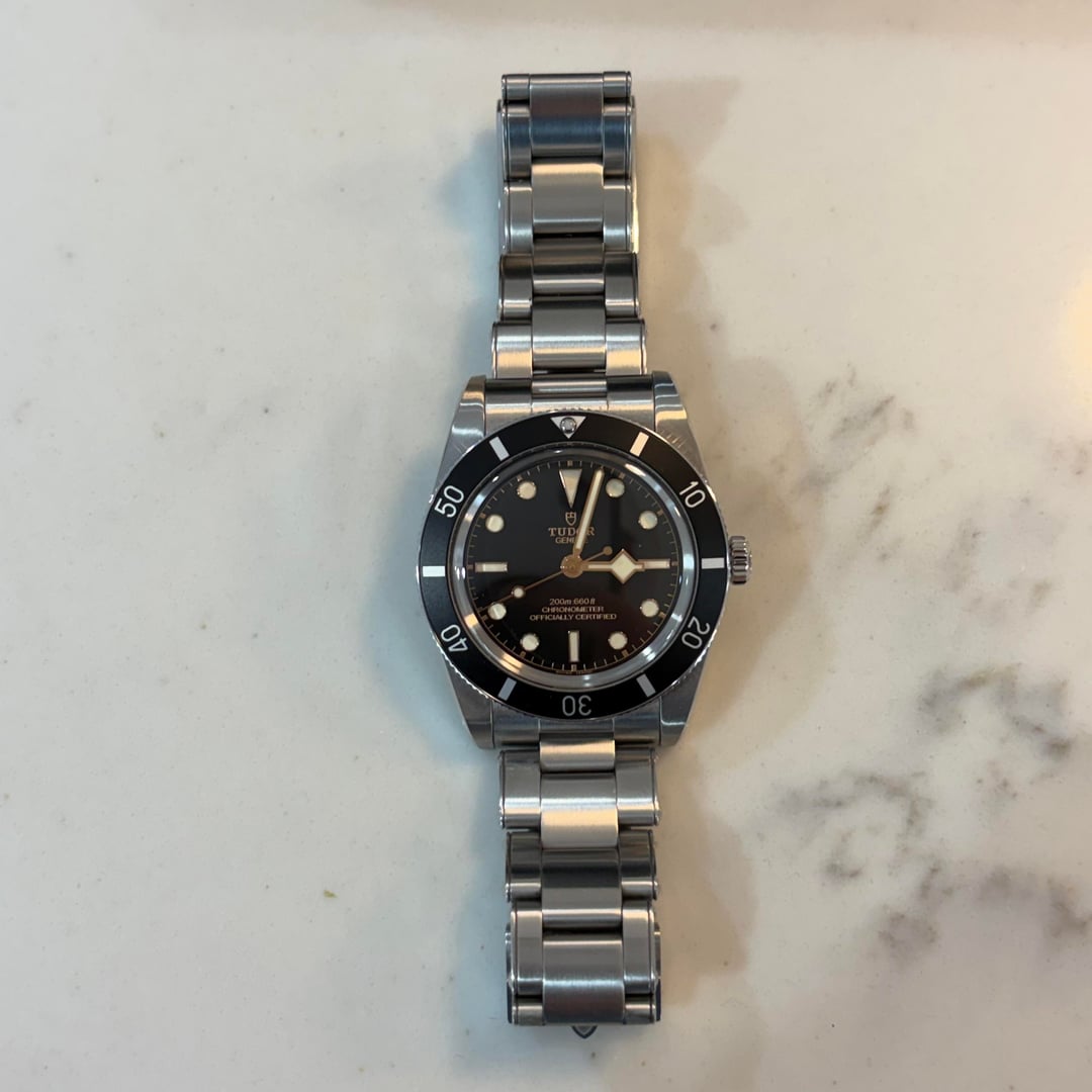 Purchased this spring. Only worn a couple of times. Near mint condition. No scratches or dings at all. Probably one of the cleanest pre owned black bay 54’s you can buy below retail. Looking for $3,400. Send me a message if interested.