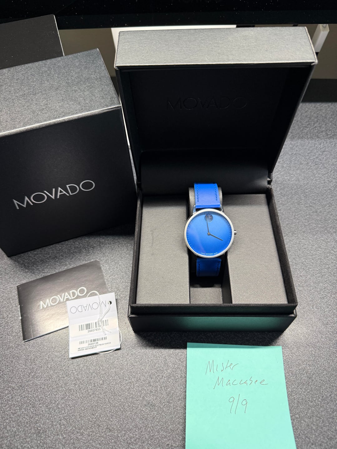 Hey folks Movado face blue dial and strap in really nice shape, see pics. Full kit. $195 shipped conus PayPal F&F. I have 59 positive transactions on watchexchange with good feedback so please read them. Also have an eBay store with hundreds of sales and hundreds of positive feedback so read them as well (offtherakcollectibles) Sale only, no trades. Ships from NYC so if you're in area can meet up locally. Please leave a comment here so I can view your transaction history and then message me if you're interested. \---------------------- Brand, Seller, or Collection Name Movado Model number 3640136 Part Number 3640136 Item Shape Round Dial window material type K1 Mineral Display Type Analog Clasp Buckle Case material Stainless Steel Case diameter 41 millimeters Case Thickness 7.5 millimetersBrand, Seller, or Collection Name Movado Model number 3640136 Part Number 3640136 Item Shape Round Dial window material type K1 Mineral Display Type Analog Clasp Buckle Case material Stainless Steel Case diameter 41 millimeters Case Thickness 7.5 millimeters