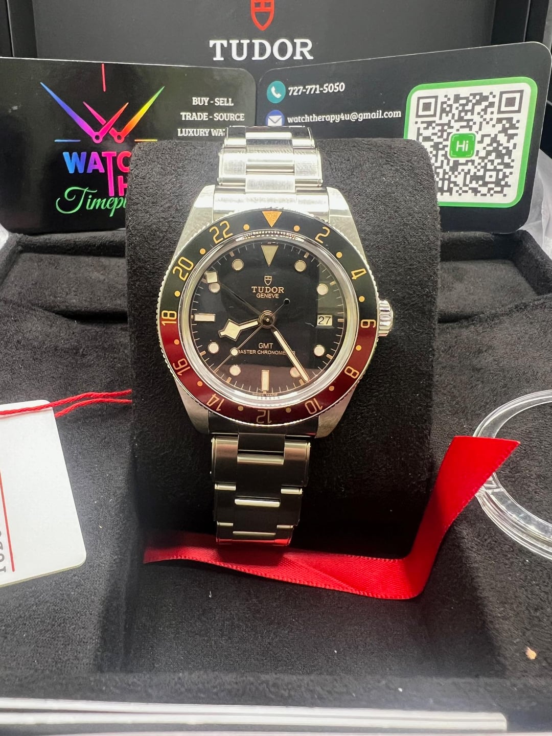 **F/S: New 2025 Tudor Black Bay 58 GMT 10/25 7939G1A0NRU “Coke”** **Shipping from Florida!** **Specs:** \* Beautiful black domed gilt dial w/Back and Burgundy Bezel \* Self-winding \* Size 39 SS case w/SS bezel and aluminum bezel \* Three-link SS bracelet with T-fit clasp \* 200M Water Resistance \* 65-hour power reserve \* MT5450-U (COSC-METAS) movement **Includes**: Warranty card 10/25, double boxed, booklets, tag, all links. **Condition:** Unworn, full stickers **Price: $4,199.00** **+ Insured shipping to your local FedEx for pick-up** **in Con US**. I am also open to a face-to-face public transaction in or around the Tampa Florida Region, within reason. I have many strong and viable references within Reddit and from Buy/Sell/Trade Watch Facebook groups. Always willing to jump on a call or meeting link to show you the watch. Thank you and please reach out if you have any questions or concerns. Florida residents may be subject to sales tax w/o a valid reseller cert. ***No Trades, TY*** **Location**: Tampa Florida **Payment:** Zelle or Wire Timestamp: [https://imgur.com/a/TCl5Zbh](https://imgur.com/a/TCl5Zbh) FB: Watch Therapy Timepieces IG: [@watchtherapy4u](https://www.reddit.com/u/watchtherapy4u/)