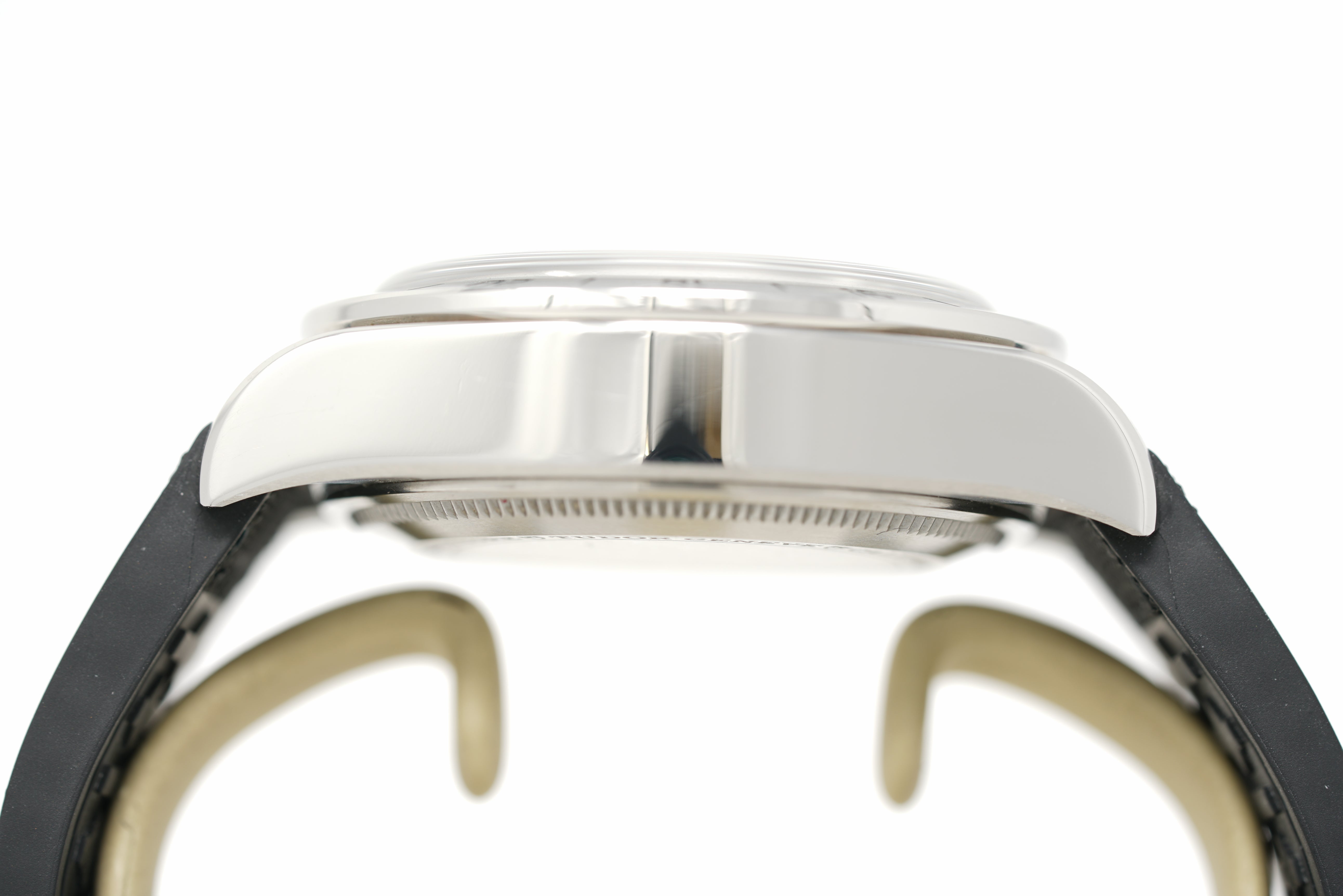 This pre-owned watch is in 83% condition due to slight marks on the lugs, bezel, and throughout the case. The strap is in 87% condition due to slight wear and marks on the clasp. Originally purchased in November 2022, this watch comes with its inner and outer box, instruction manual, warranty card, hangtag, and the one-year Topper Pre-Owned Select warranty.