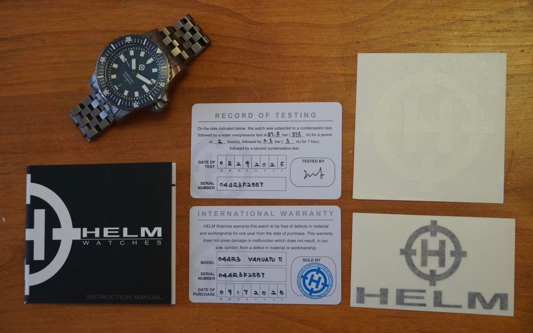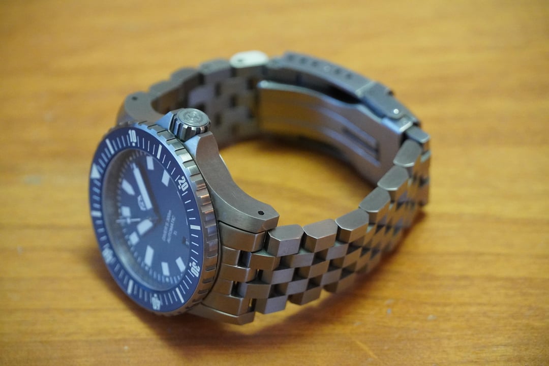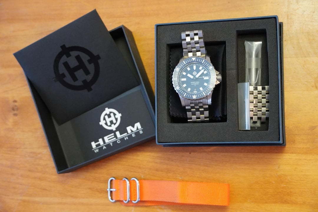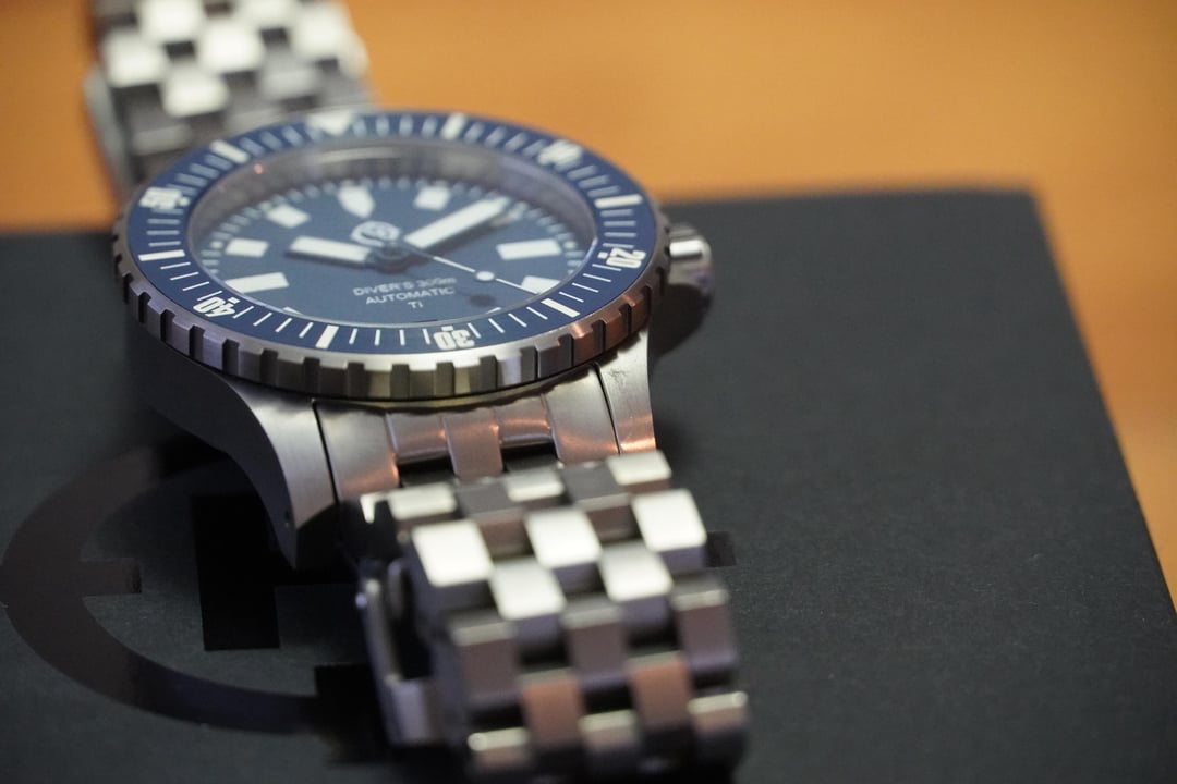 Watch for sale. Asking $290. Helm Vanuatu Titanium in blue. 300m tested divers watch with all original papers, boxes, and pieces included. The watch is in very good condition but has a few small blemishes from light wear (most notably on the lug at 5 o’clock & the clasp, see photos). It keeps awesome time and with regular wear the watch has been +1-2 seconds per day. Date at 6 o’clock, ceramic bezel, and great lume! Message me if you have any questions.