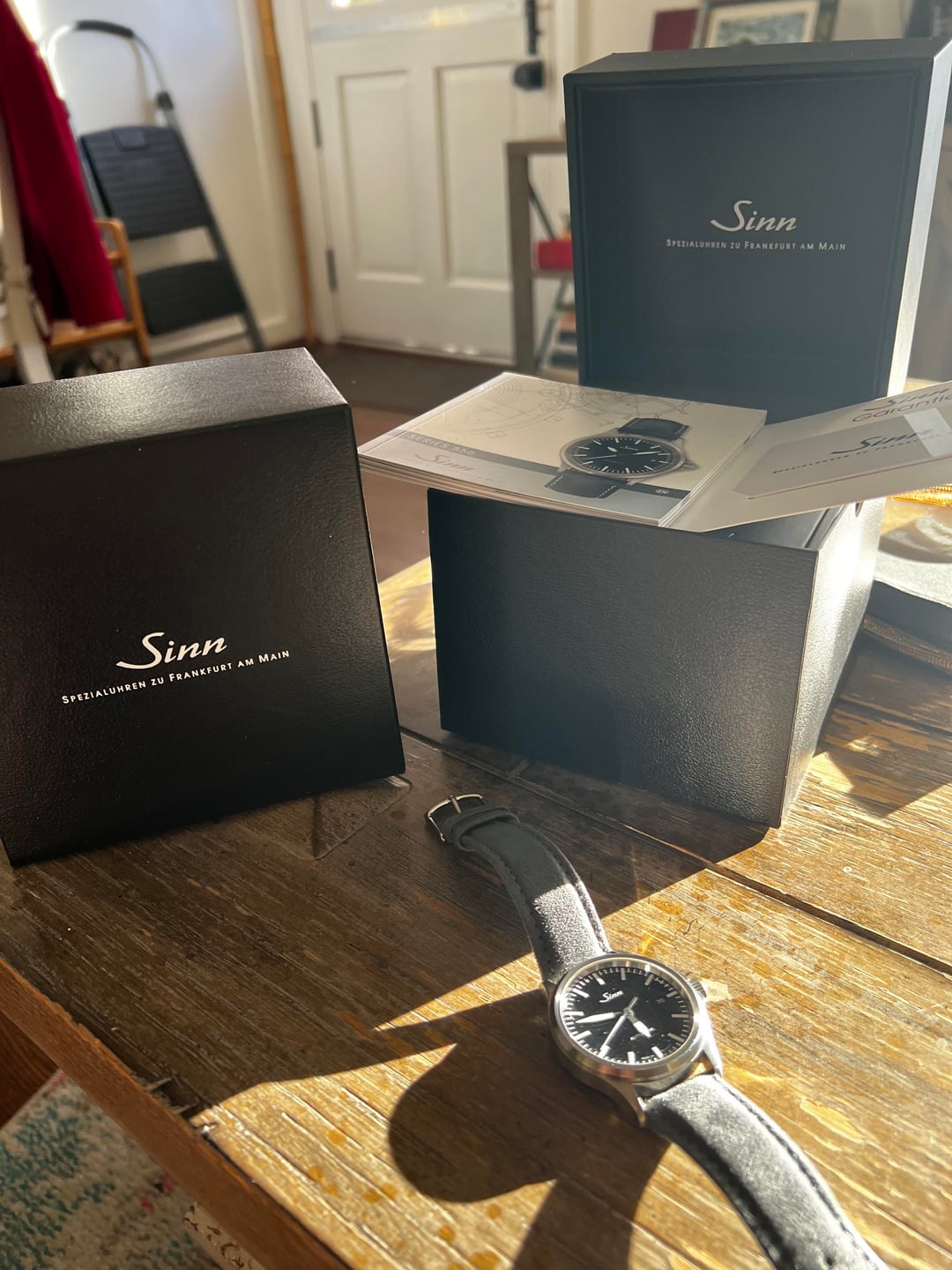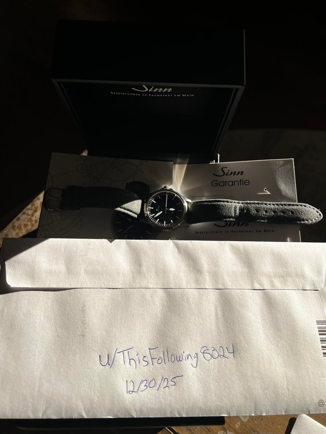 Selling my Sinn 556i mounted on the OEM grey Alcantara strap. This is a fantastic everyday watch with Sinn’s signature clean dial, tool-watch feel, and extremely wearable proportions. This one has been worn and shows some honest use. Most notably, there is a small gash on the bezel around the 4:30 position, along with normal light wear from regular wear. Crystal is clean, movement runs well. Comes as a full set: • Box • Papers • OEM grey Alcantara Sinn strap • Gold rotor movement (not the newer silver rotor — many prefer this version) Price: $865 — slightly negotiable Payment: PayPal F&F preferred; PayPal G&S accepted if buyer covers fees; Venmo also accepted Shipping: Additional – USPS Priority Flat Rate (tracked; insurance optional at buyer’s cost) Location: CONUS - North Carolina Trades: No trades Happy to send additional pictures, close-ups of the bezel mark, or video if needed. Thanks for looking!