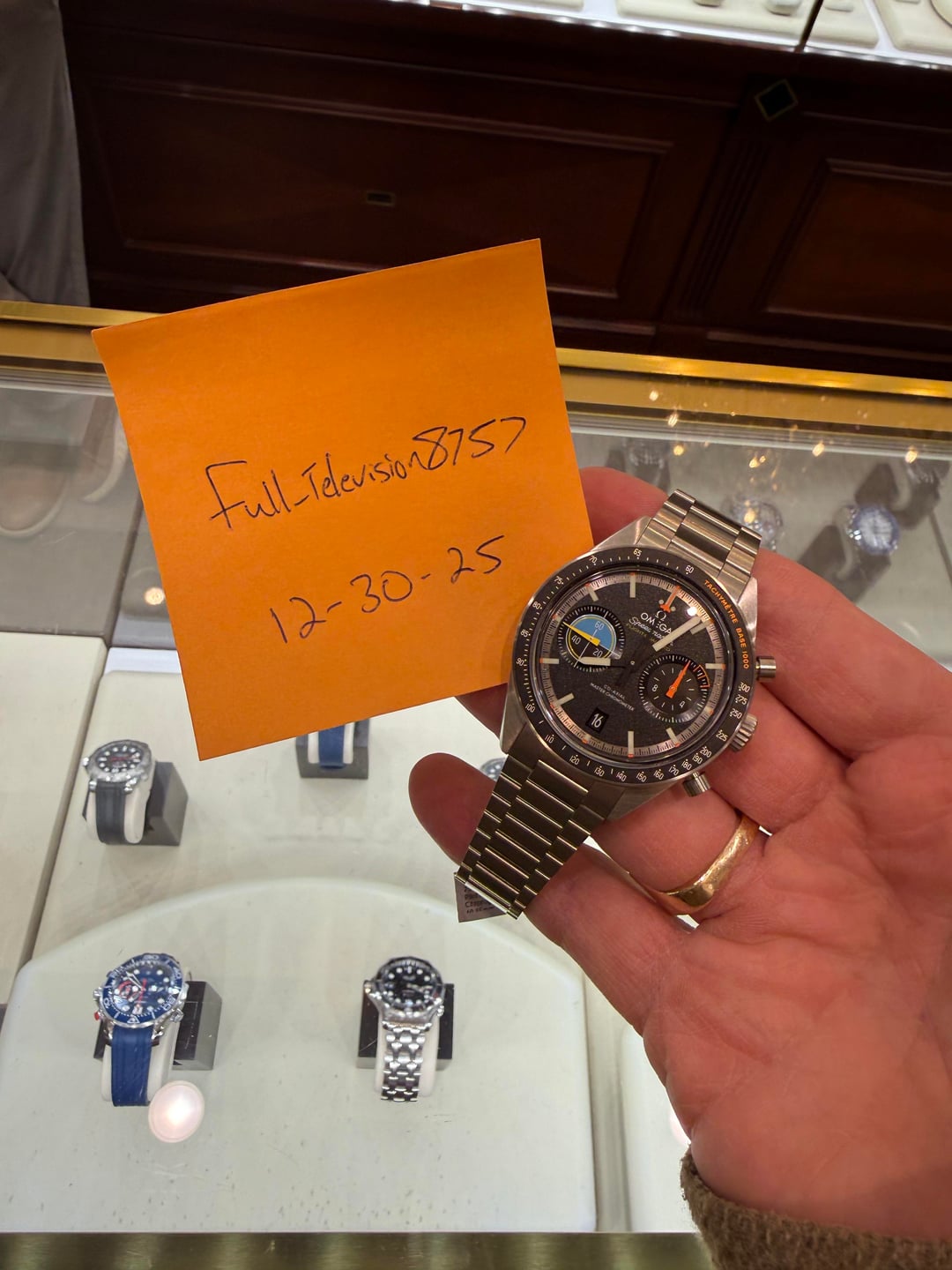 Model: Speedmaster Pilot Automatic Ref# 332.10.41.51.01.002 Case Material: Stainless Steel Case Dimensions: 40.85 mm Bezel: Stainless Steel Black Bezel Dial: Black Dial Band Material: Stainless Steel Bracelet Max Wrist Size: 8 in. Movement: Automatic, Mechanical Accessories: Full Set Condition: Has Some Very Light Scratches on the Case, Bracelet and Buckle Original Purchase Date: December 2024 Still Under Omega 5-Year Warranty Price: $8,000 shipped! Bank wire price. WA residents subject to sales tax Email: [email protected]