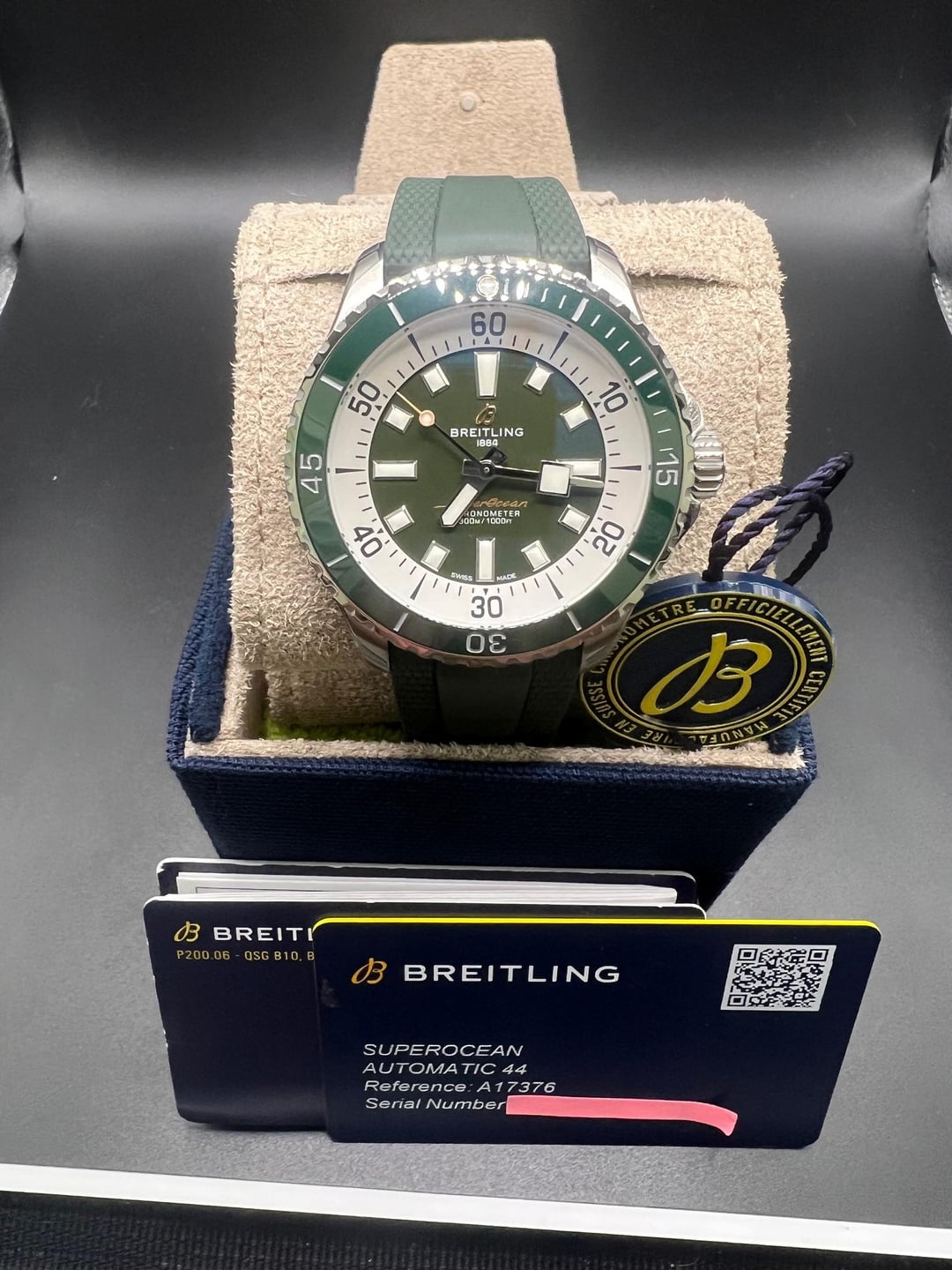 ![Thumbnail [WTS] 2025 New Breitling Superocean 44mm Green Rubber stickers A17376 (A17376A31L1S1) $3,299.00 1](https://cdn-cf.watchpatrol.net/120x120/img/full/3303ded0655b21d8978e6d811c4f459bf74bffc4.jpg)