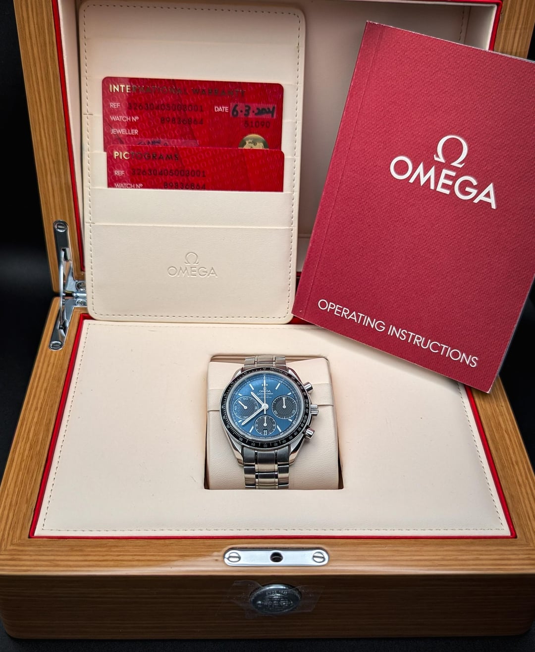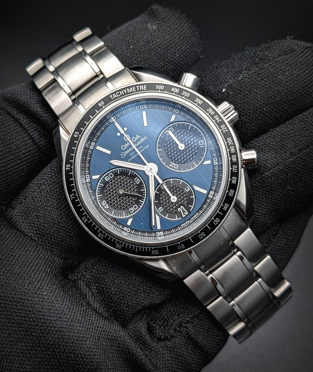 This Speedmaster Racing in a beautiful blue dial blends classic Speedmaster DNA with a sharper, more contemporary edge. At 40mm, it hits the sweet spot—sporty, wearable, and perfectly balanced on the wrist, making it one of the most versatile Speedmasters Omega has produced. The sunburst blue dial is truly the star here, shifting effortlessly from deep navy to electric blue depending on the light. Applied markers, crisp white racing-style minute track, and recessed chronograph subdials give the watch real depth and legibility, while the date at 6 o’clock keeps things practical without disrupting the symmetry. Finished on its original stainless steel bracelet, this Speedmaster Racing wears comfortably, feels great on the wristand transitions effortlessly from daily wear to weekend chronograph duties. You can pick up this set in excellent condition still under Omega's warranty for $2990 insured and shipped. Brand: Omega Model: Speedmaster Racing Blue Reference: 326.30.40.50.03.001 Case Size: 40mm Year: 2021 Comes as: Watch, OEM Bracelet (links up to 7.25 in), outer and inner boxes, warranty card, pictogram card , manual. No chronometer card, but this is inconsequential. Condition: Excellent condition with only minor wear on polished portions from normal use. Can be returned to new with light polish. Runs excellent on timegrapher, see pics in album for reference. Price:$2,990 Image Gallery: [https://postimg.cc/gallery/J89jtjb](https://postimg.cc/gallery/J89jtjb) Timestamp: [https://postimg.cc/DSdtMx0r](https://postimg.cc/DSdtMx0r) Open to trades or purchase of: Modern Rolex, Tudor, Omega, Cartier, Breitling, Grand Seiko, IWC, Zenith. Payment Methods: Zelle or Wire. Paypal FF, Venmo and stable currency crypto available for established buyers