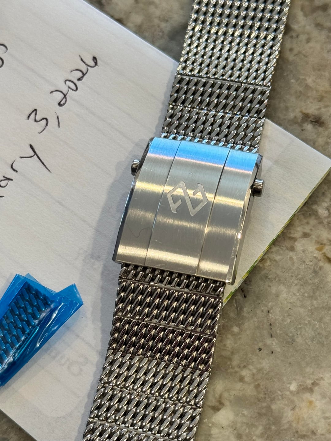 For sale is the mesh bracelet off of my Formex Reef GMT. It is in excellent condition with very minor blemishes on the clasp. It is currently sized for my 7.75” wrist with one additional link. Asking $250 OBO shipped CONUS. Venmo, PayPal, or Zelle accepted for payment.