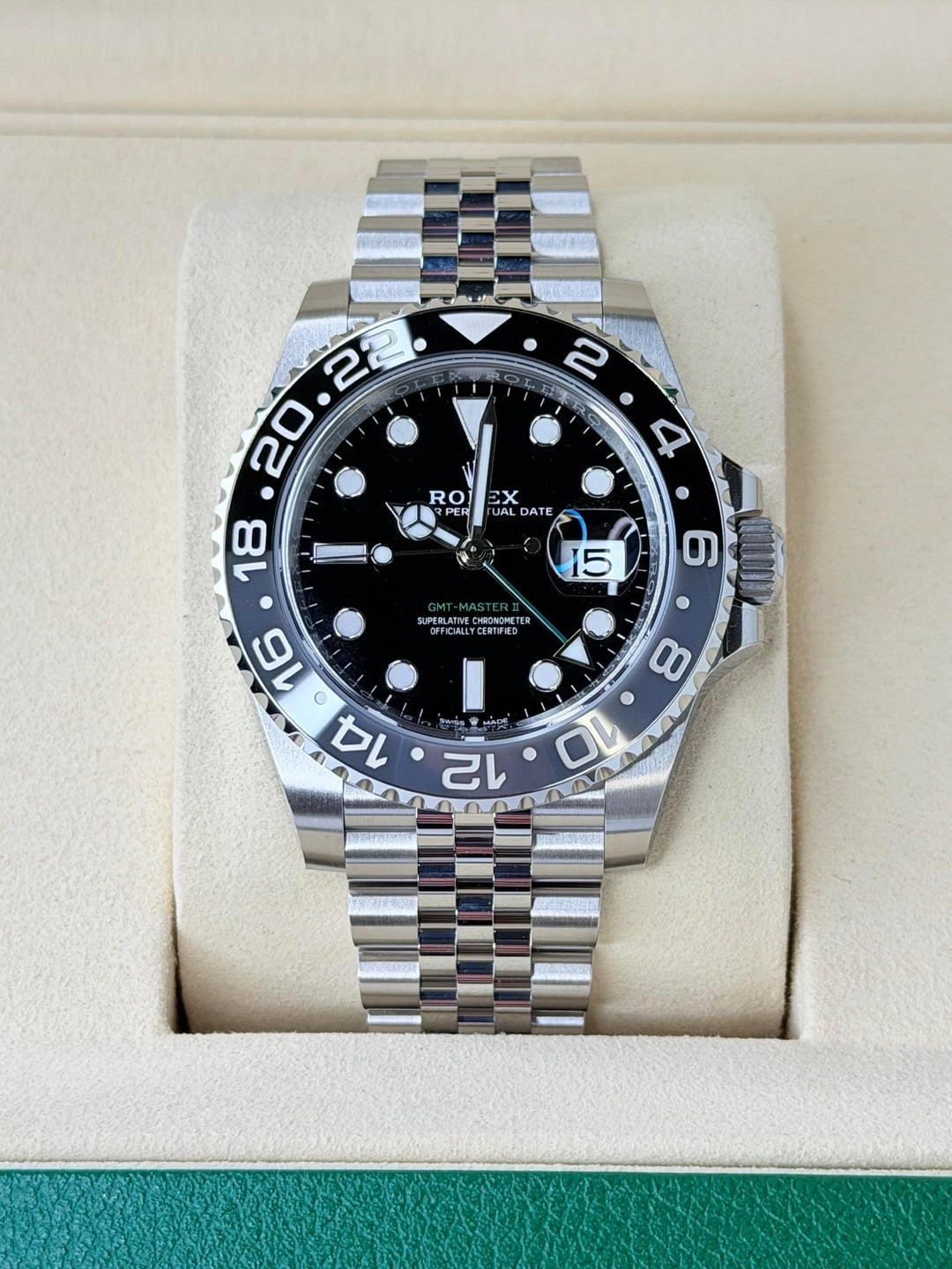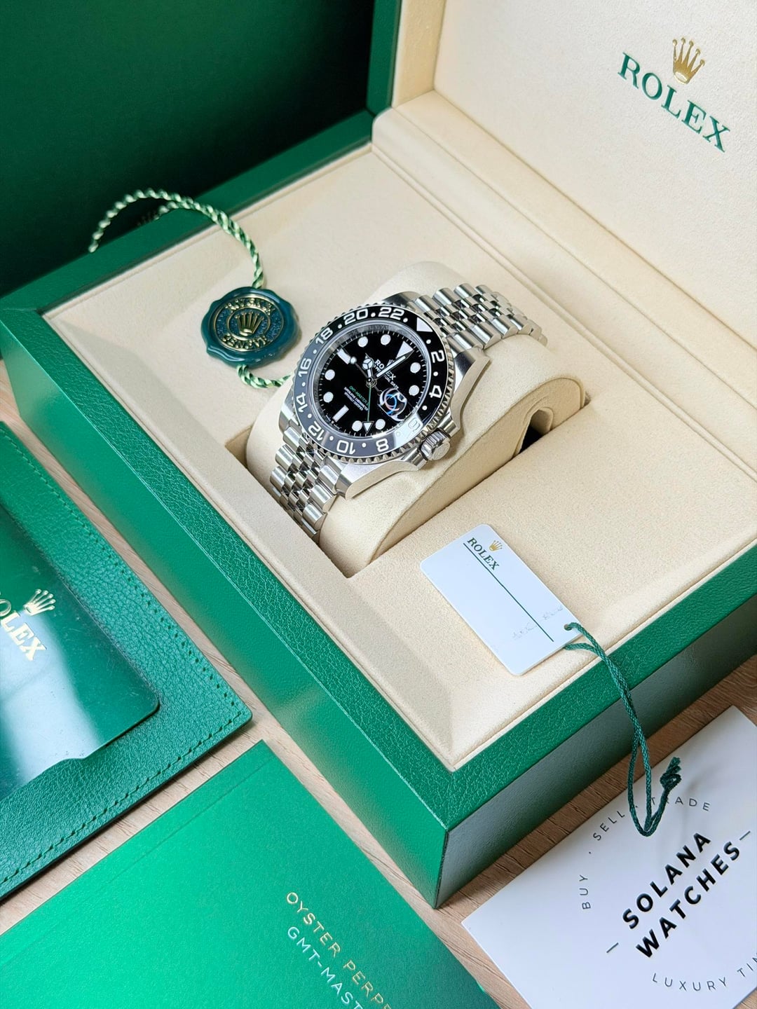 Selling this brand new 40mm Rolex GMT Master II reference 126710GRNR /126710 on Jubilee bracelet, aka the Bruce Wayne. **This GMT is brand new, unworn**. **It** **comes as a full set**, including the Rolex green box, outer box, manual, warranty booklet, leather wallet, hangtag, serialized hangtag, and warranty card dated 12/2025. **Photos:** * [Album](https://imgur.com/a/new-bruce-wayne-dec2025-Md2zGoj) * [Timestamp](https://i.imgur.com/7WHAKOU.jpeg) * [More on my Instagram @SolanaWatches](http://find%20me%20on%20Instagram%20@SolanaWatches) **Price is $21,500 delivered **in the US. **I am a full-time watch dealer, and I have completed many transactions here. **I can provide additional references upon request. **Feel free to contact me** via PM here so we can exchange numbers and get on the phone or do a video call. You can also [find me on Instagram @SolanaWatches](https://www.instagram.com/solanawatches/). _Private showroom located in San Diego, CA. Reach out to schedule an appointment._ _All my watches are guaranteed 100% authentic, and I will stand by their authenticity. _ _California buyers without a seller’s permit are subject to sales tax._