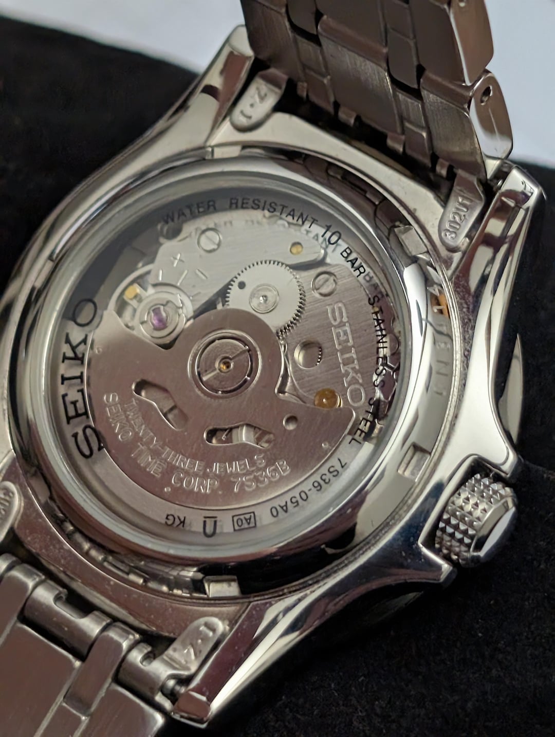 FS: Seiko 5 SPORTS SNZJ37 on OEM bracelet - Rare Seiko 5 with undulating bezel and knurled crown - full kit - excellent condition - spare links - includes free ship to USA For Sale: $225 Price includes trackable shipping via USPS Ground Advantage to USA. Shipping to other countries to be paid by buyer. Sale only, no trades Timestamp: [https://imgur.com/a/79AFQ7v](https://imgur.com/a/79AFQ7v) Unique Seiko 5 Sports with crisp dial, framed indices, unique bezel, knurled crown, and comfortable bracelet with robust clasp Step up from most of the usual Seiko 5s See-thru caseback Powerful lume Watch runs well, no issues. Crystal, bracelet all in good shape. Sized for comfortable, loose fit on my 6.75" wrist, and comes with three extra links. Comes with outer box, hard plastic inner box, pillow, manual, unfilled-out warranty card, hang tag Lume on hands and indices. Lug width: 21mm Quickset works well for day/date Alternate day 'language' is Roman Numerals 39mm dial with 44.7mm lug to lug Crown at 3 o'clock position Dial Code: 7S36 06P4 R2 Case Code: 7S36 05A0 I am a private collector of watches. I have sold several watches and accessories through Watchuseek and Reddit, and many more watches and bracelets through eBay (120+ transactions),and will provide references upon request. Let me know if you have any questions. All sales final.