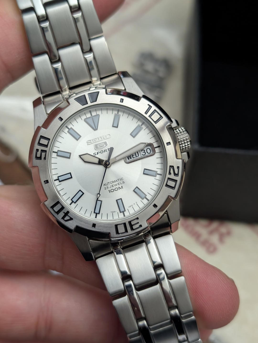 ![Thumbnail [WTS] Seiko 5 SPORTS SNZJ37 on OEM bracelet - Rare Seiko 5 with undulating bezel and knurled crown - full kit - excellent condition - spare links 7](https://cdn-cf.watchpatrol.net/120x120/img/full/cdc88639f8127ae253bf4c20abc2f8fc2f18effc.jpg)