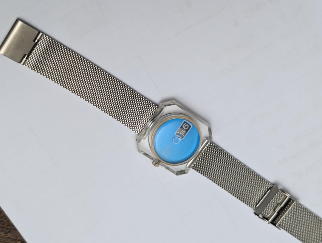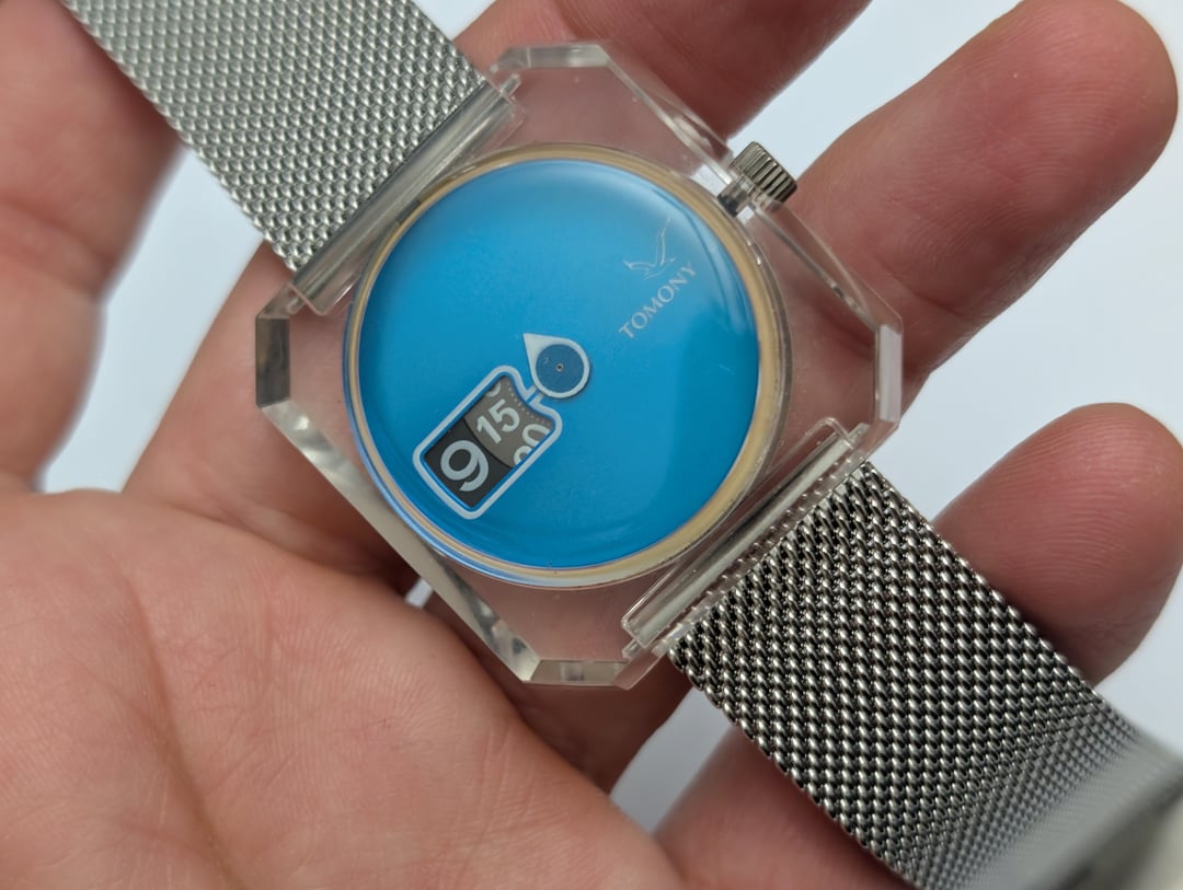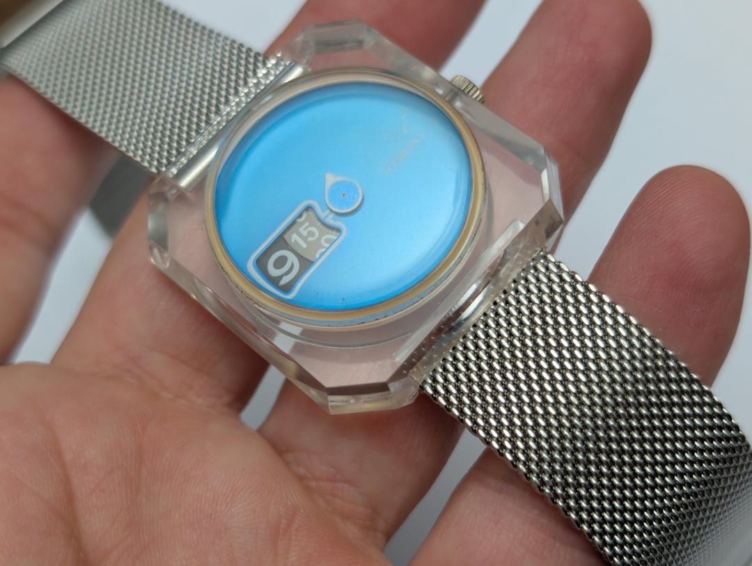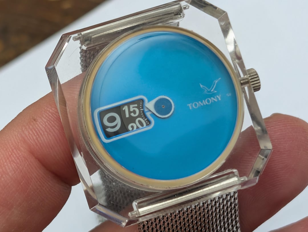 FS: Seiko Tomony Sea Gull Jump Hour 5018-7000 in clear case on Milanese strap - excellent condition - free ship USA For Sale: $200 Price includes trackable shipping via USPS Ground Advantage to USA. Shipping to other countries to be paid by buyer. Sale only, no trades Timestamp: [https://imgur.com/a/Tvj3KSz](https://imgur.com/a/Tvj3KSz) Unique 1977 jump hour watch from one of Seiko's sub-brands Model number is 5018-7000 Full circular blue dial encased in an acrylic square faceted case with a teardrop-shaped running second hand. Manual wind movement with jump-hour display (takes about 3 - 4 minutes to jump; is not a direct read where hour slowly turns over course of the hour) Original band deteriorated long ago; on aftermarket strap Lug width : 20mm Case is 36mm wide x 37mm high; 13.5mm thick Crown at 3 o'clock position Watch runs well, no issues. I am a private collector of watches. I have sold several watches and accessories through Watchuseek and Reddit, and many more watches and bracelets through eBay (170 transactions including 85+ sales),and will provide references upon request. Let me know if you have any questions. All sales final.