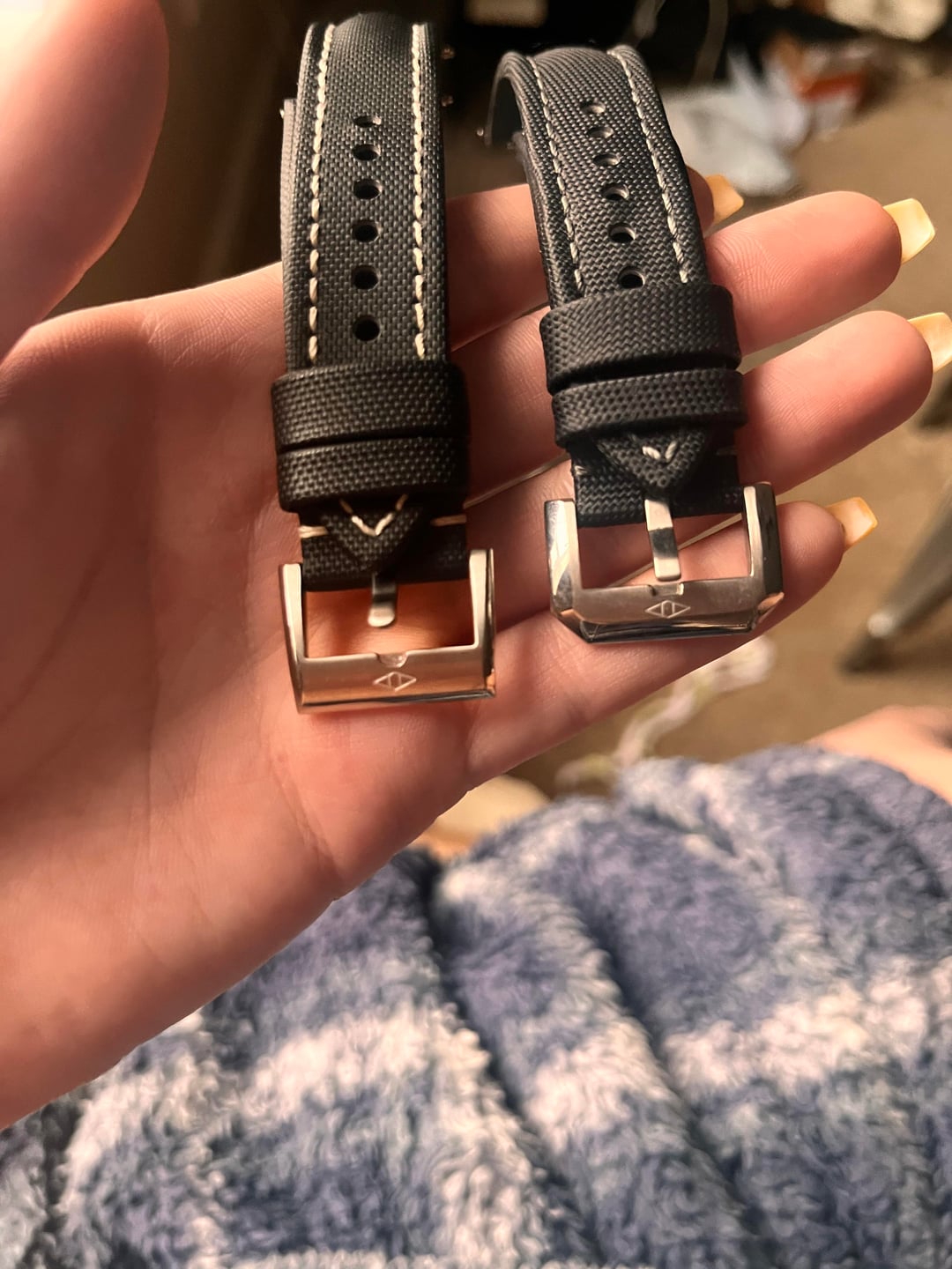 [WTS] Artem 20mm Straps Left to right 20mm Black with grey stitching Artem sailcloth strap/ $85 20mm black with white stitching Artem sailcloth strap/ SOLD Prices include shipping Venmo, PayPal