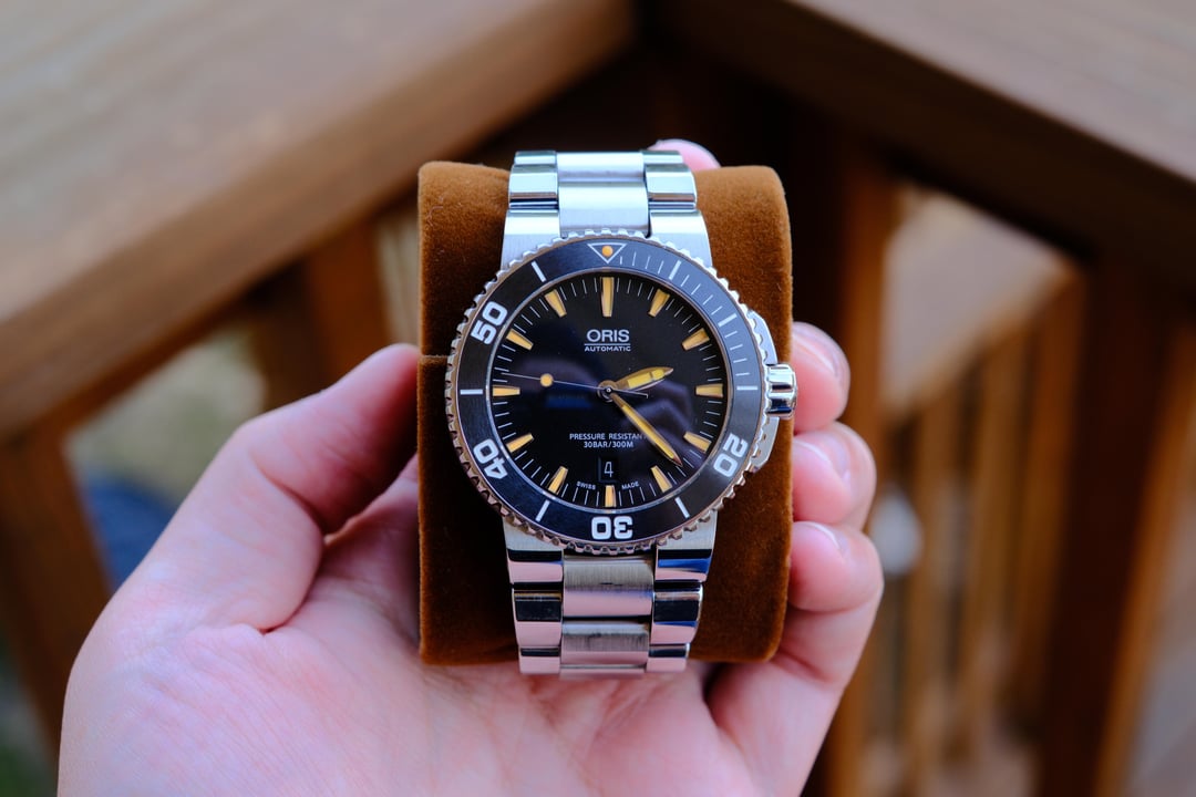 I am selling my Oris Aquis Diver, which I purchased new back in 2015. I have only lightly worn the watch for the first two years of owing it, and it has since been a safe queen until now. So I am looking to part away with the watch, and it deserves a better place. The watch is in very good condition, with minor scratches mostly on the bracelet. What is included: The watch, Oris guarantee card, all links, no original boxes. Asking for $850 + label. (CONUS only) Payment method: Paypal FF or GS (buyer pays fee). Please reply before PM. Willing to facetime to show the watch. Time stamp: [https://drive.google.com/file/d/1ZpVgAC2BlZbkjKNorENPxU4GV3L9sp3C/view?usp=sharing](https://drive.google.com/file/d/1ZpVgAC2BlZbkjKNorENPxU4GV3L9sp3C/view?usp=sharing)
