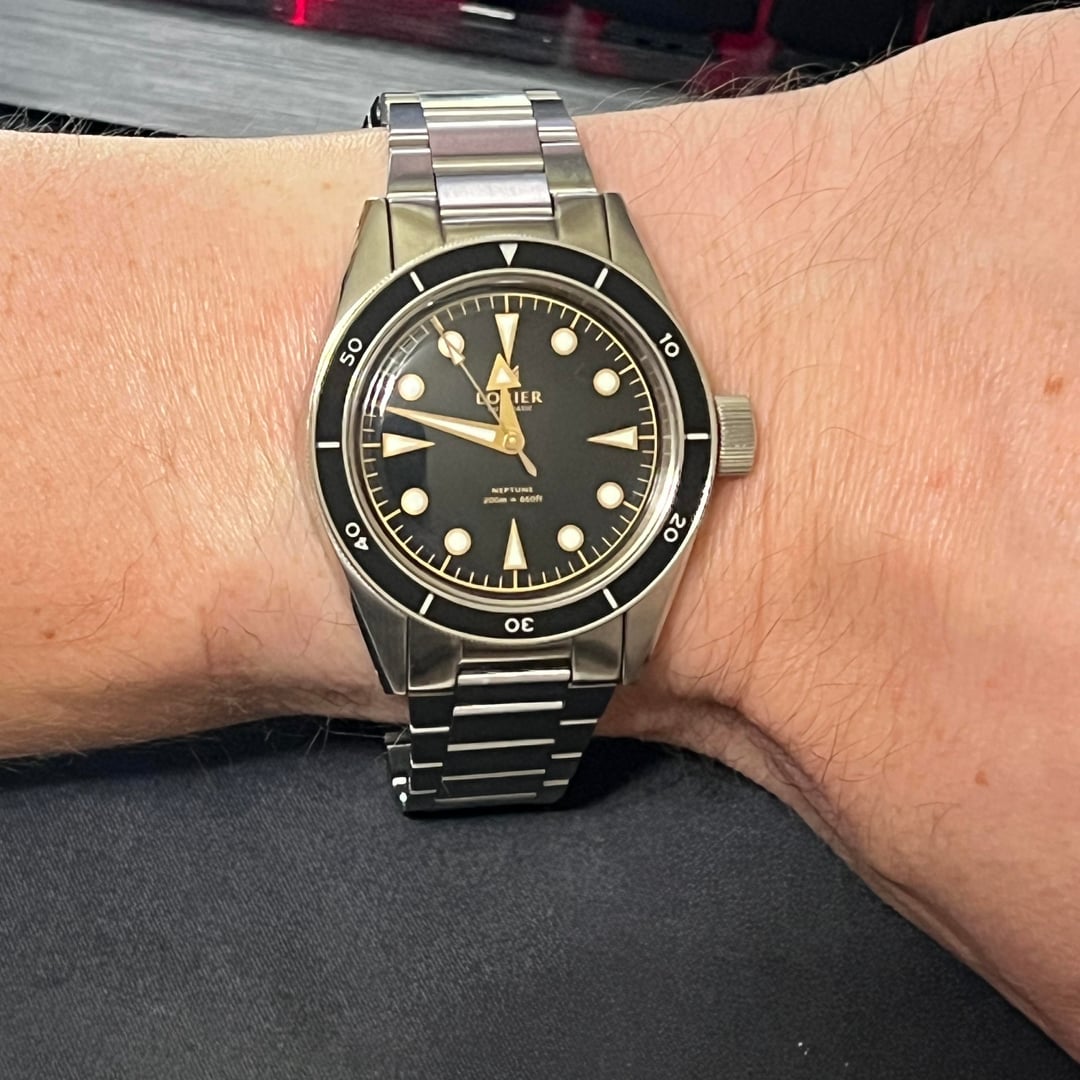 Hello again watch collectors, I am looking to move along my Lorier Neptune Series IV gilt no-date as part of my collection thinning in the new year. The watch is in excellent scratch-free condition while the bracelet has some scratches from wear on the clasp and links. Asking $450 shipped CONUS via PayPal FF (or GS with 4% fee). Miyota 9015 automatic movement, high domed hesalite crystal, 39mm diameter, includes watch, box, full links, and watch pouch. This watch is an absolute strap monster and has a very handsome side profile and got more wear than my black bay 58 for these reasons. Pictures of clasp/bracelet [scratches](https://imgur.com/a/OkocY5D). Edited for formatting.